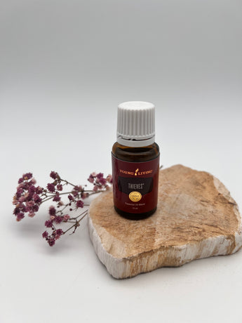 ✨ Thieves ist die legendäre Schutzmischung von Young Living, inspiriert von der alten Rezeptur französischer Räuber im Mittelalter. Diese kraftvolle Kombination aus Zimt, Nelke, Rosmarin, Eukalyptus und Zitrone reinigt, stärkt und schützt – auf körperlicher, emotionaler und energetischer Ebene. Ob zur Raumreinigung, in der Erkältungszeit oder für dein Aura-Spray – Thieves ist dein zuverlässiger Begleiter für klare, geschützte Energie.