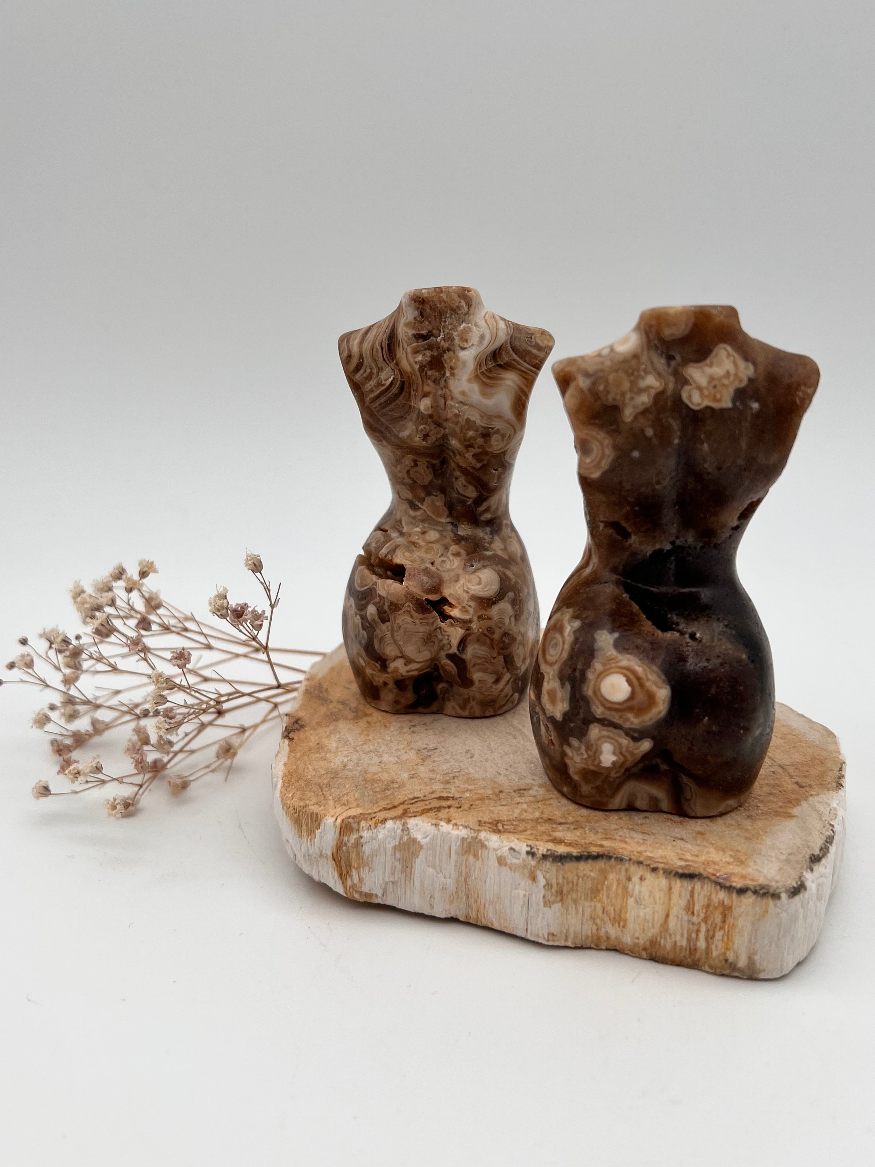 Diese handgefertigten Göttinnenfiguren aus Chocolate Calcit strahlen pure Erdverbundenheit und schützende Wärme aus. Mit ihren einzigartigen, natürlichen Musterungen erinnern sie an alte Landschaften und Flüsse – als hätten sie die Weisheit der Erde selbst in sich gespeichert.