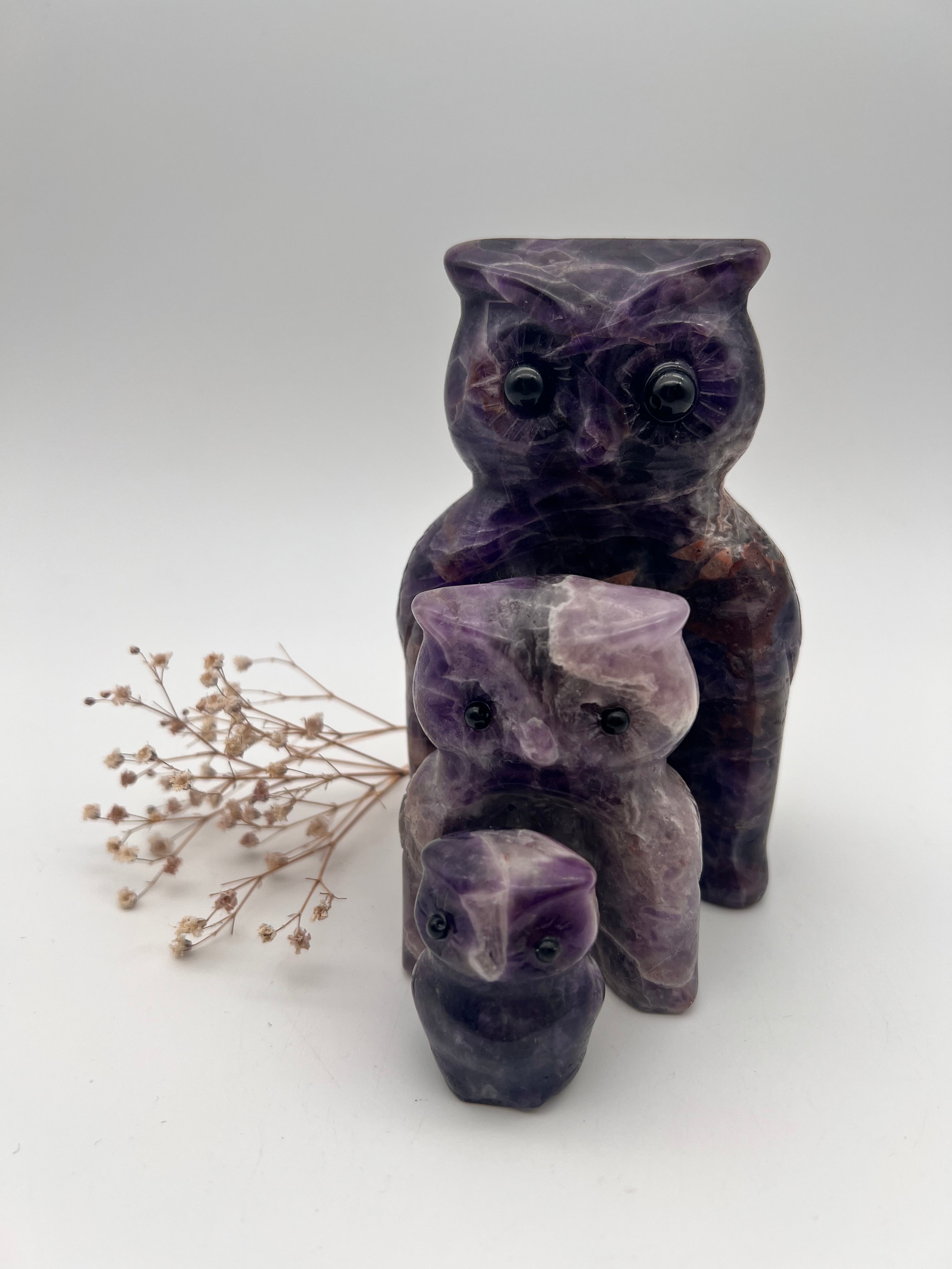 Eulenfamilie aus Amethyst – Weisheit & Schutz in violetter Harmonie 1