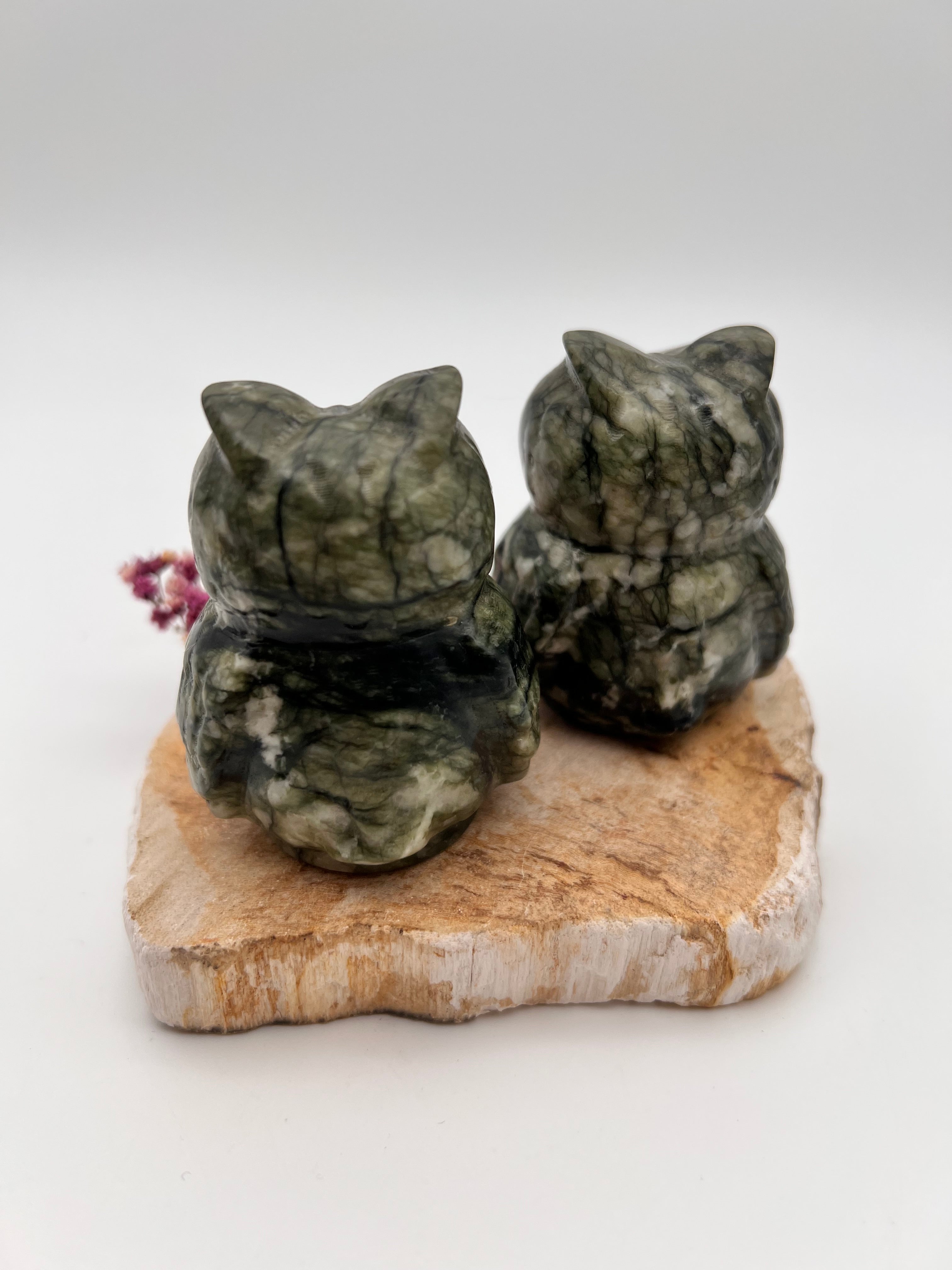 Diese liebevoll gearbeitete Eule aus grüner Jade vereint uraltes Wissen mit sanfter Heilenergie. In vielen Kulturen gilt die Eule als Symbol für Klarheit, Weitsicht und tiefes Vertrauen in den eigenen Weg. In Jade gearbeitet, verstärkt sich ihre Botschaft: Ruhe finden – und aus dem Herzen heraus handeln.