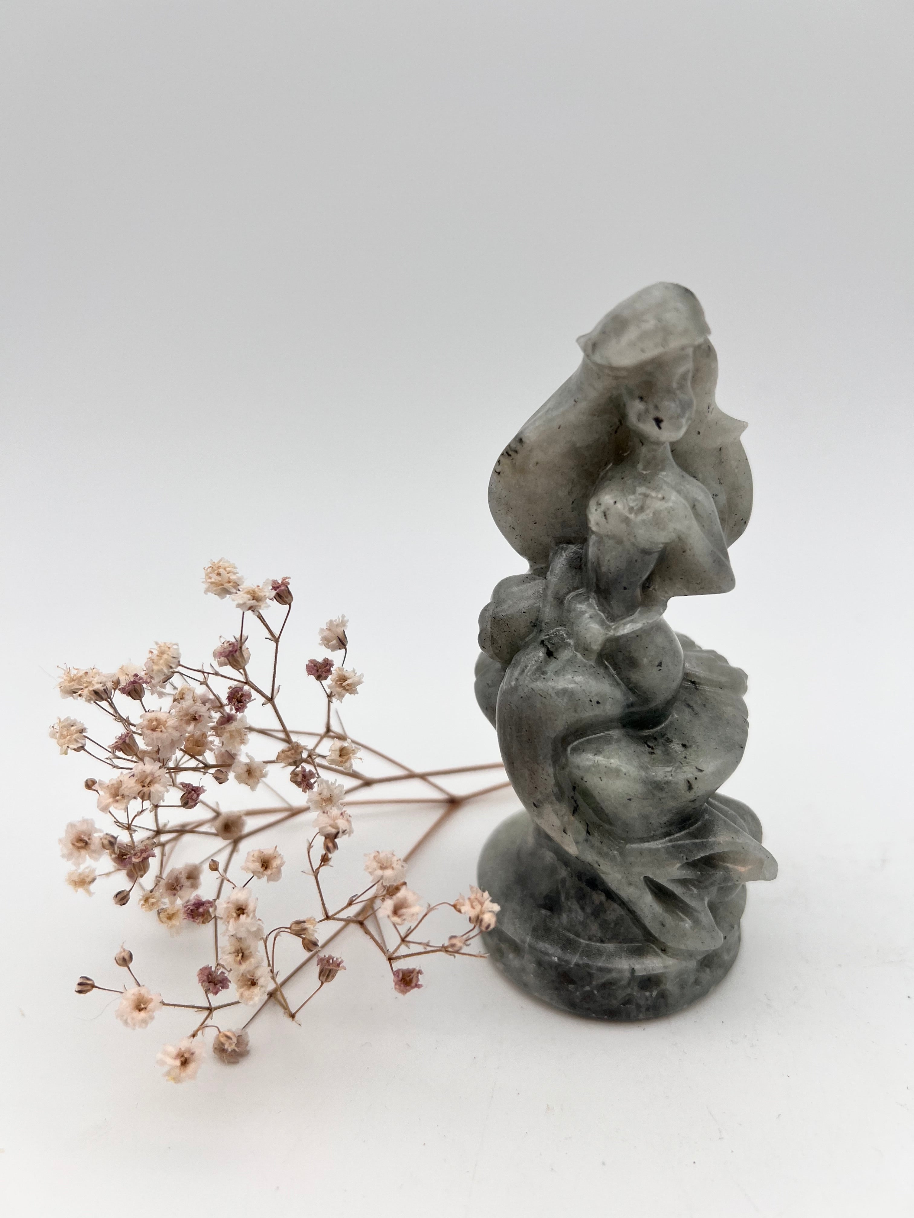 Diese handgeschnitzte Meerjungfrau aus schimmerndem Labradorit wirkt wie aus einer anderen Welt – geheimnisvoll, kraftvoll und zutiefst intuitiv. Ihr Glanz erinnert an das Spiel des Lichts unter der Wasseroberfläche, ihre Form an uraltes Wissen aus den Tiefen der Seele.