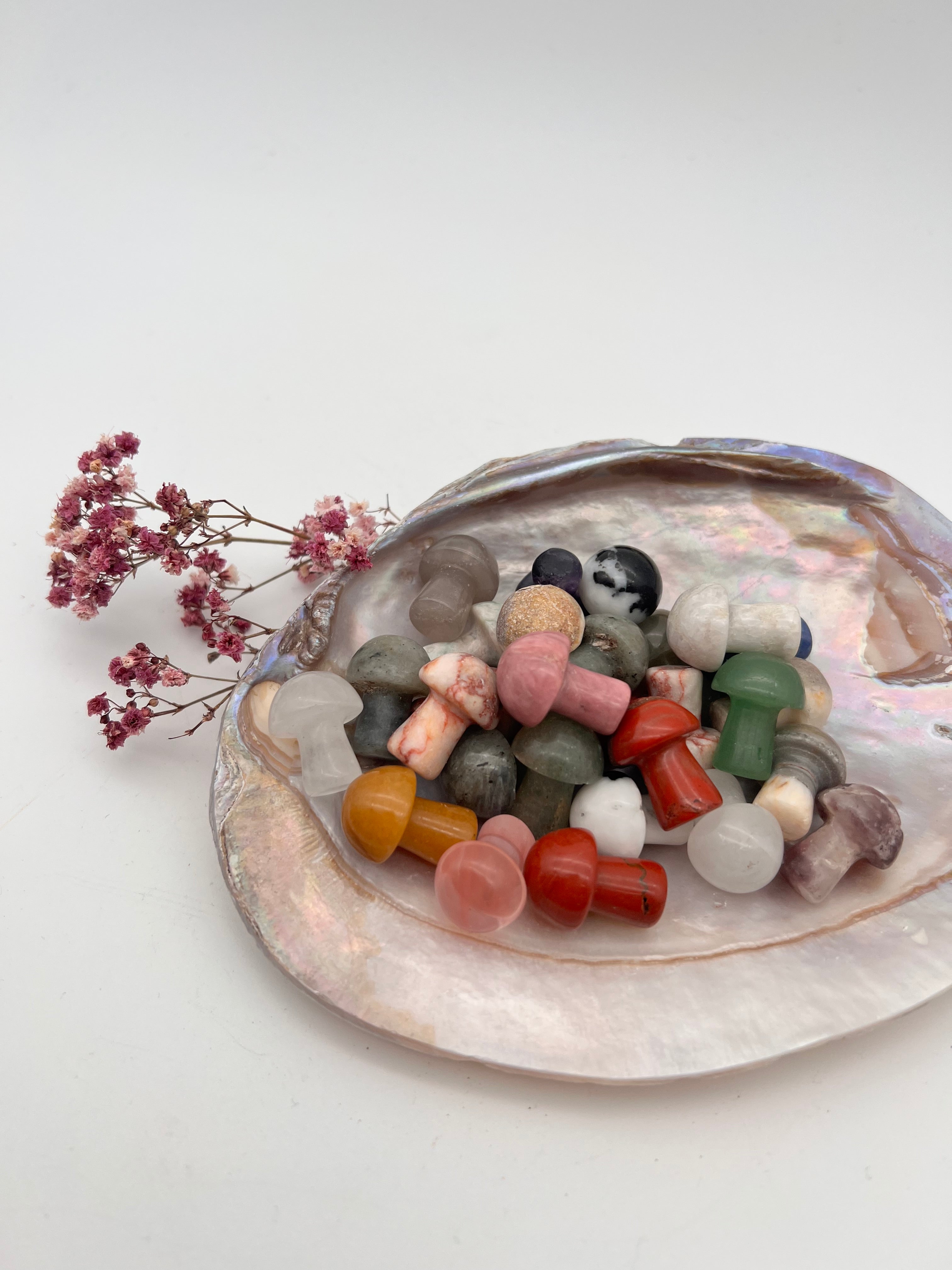 Welcher Mini-Pilz darf heute bei dir einziehen? Ob Aventurin, Jaspis, Quarz, Fluorit, Tigerauge oder andere bunte Überraschungen – jede Mystery-Spitze bringt ihre ganz eigene Energie mit und wartet darauf, von dir entdeckt zu werden.