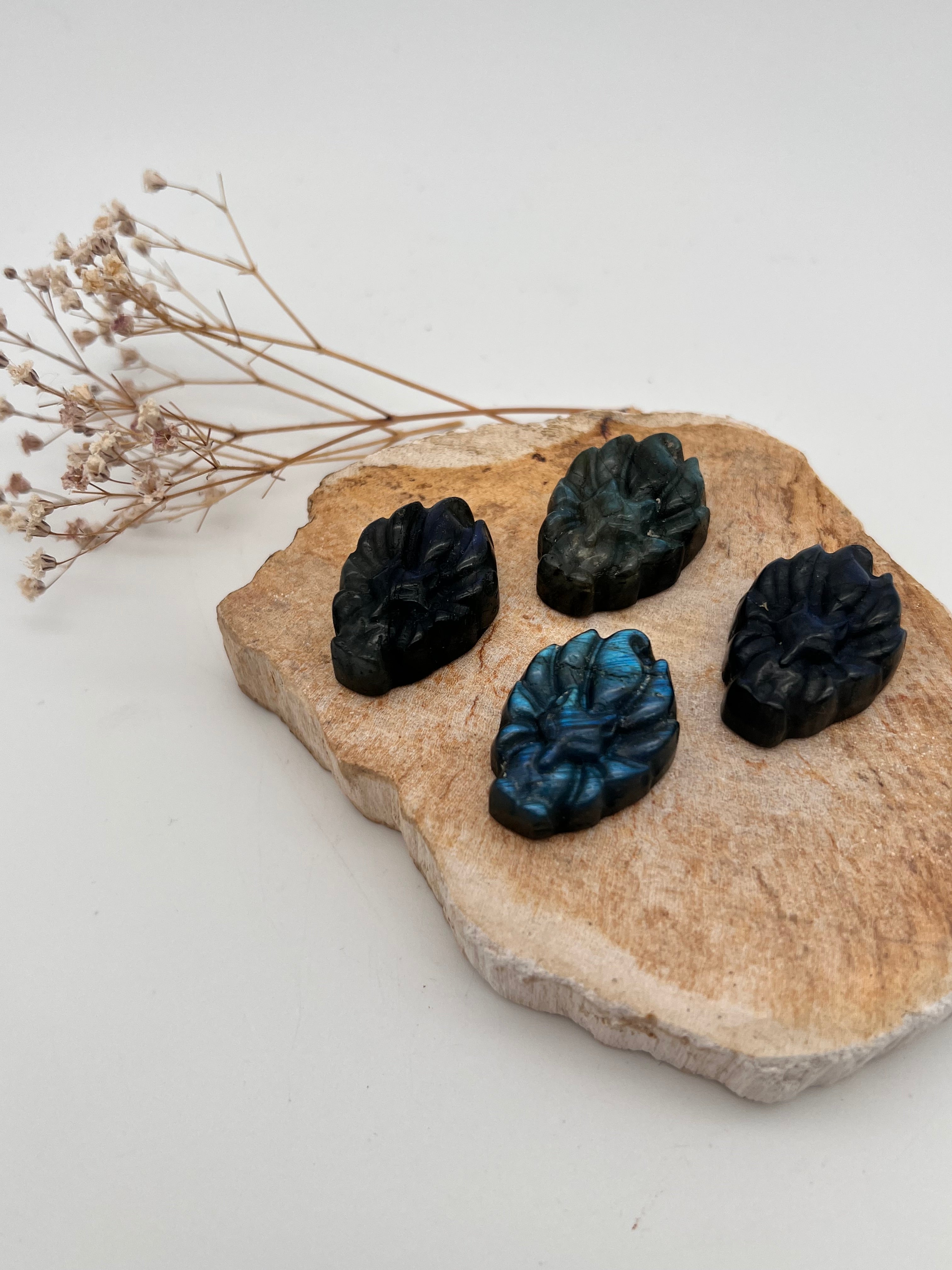 In der Mythologie Ostasiens gilt der neunschwänzige Fuchs als Symbol für Weisheit, Wandlungsfähigkeit und geheimnisvolle Magie. Diese kleinen Figuren wurden aus schimmerndem Labradorit gefertigt – einem Stein, der für seine schützende Aura und mystische Energie bekannt ist.