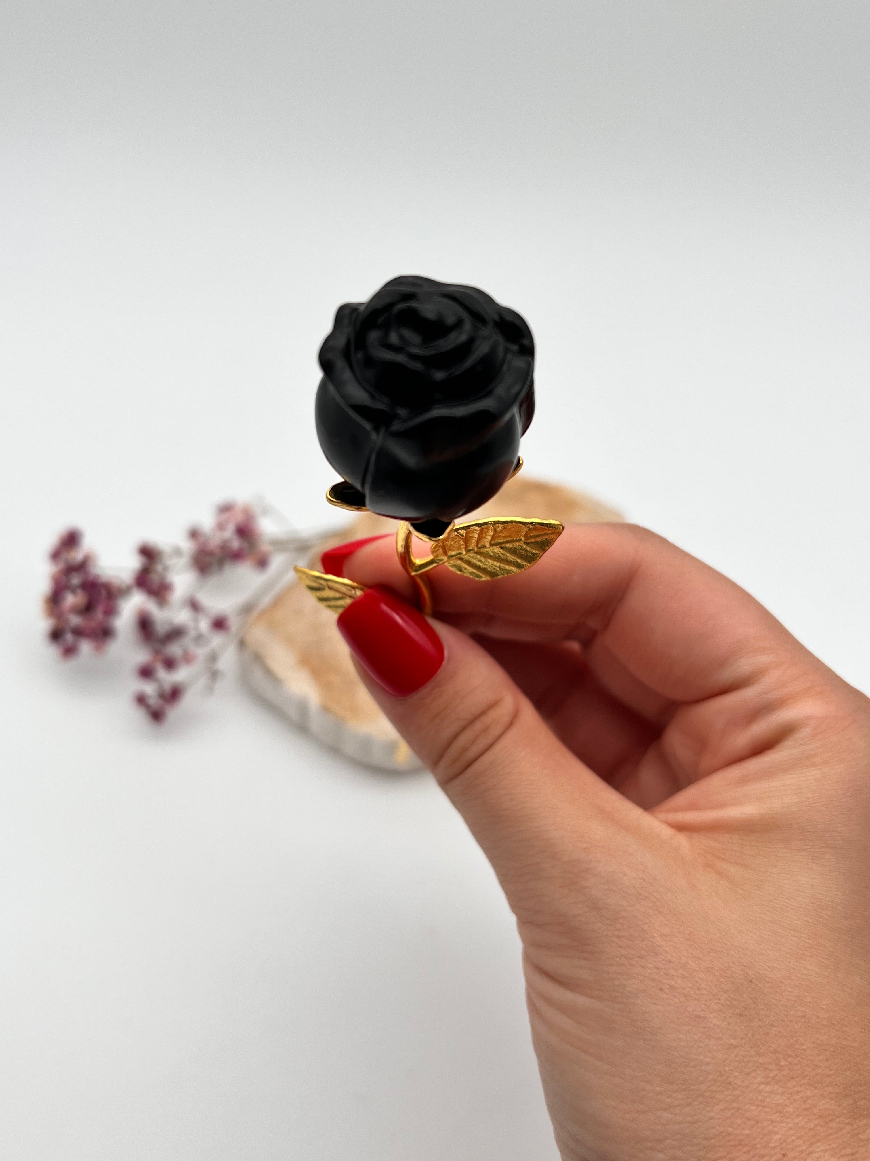 Obsidian-Rose mit goldenem Stängel – Schutz, Tiefe & feminine Stärke