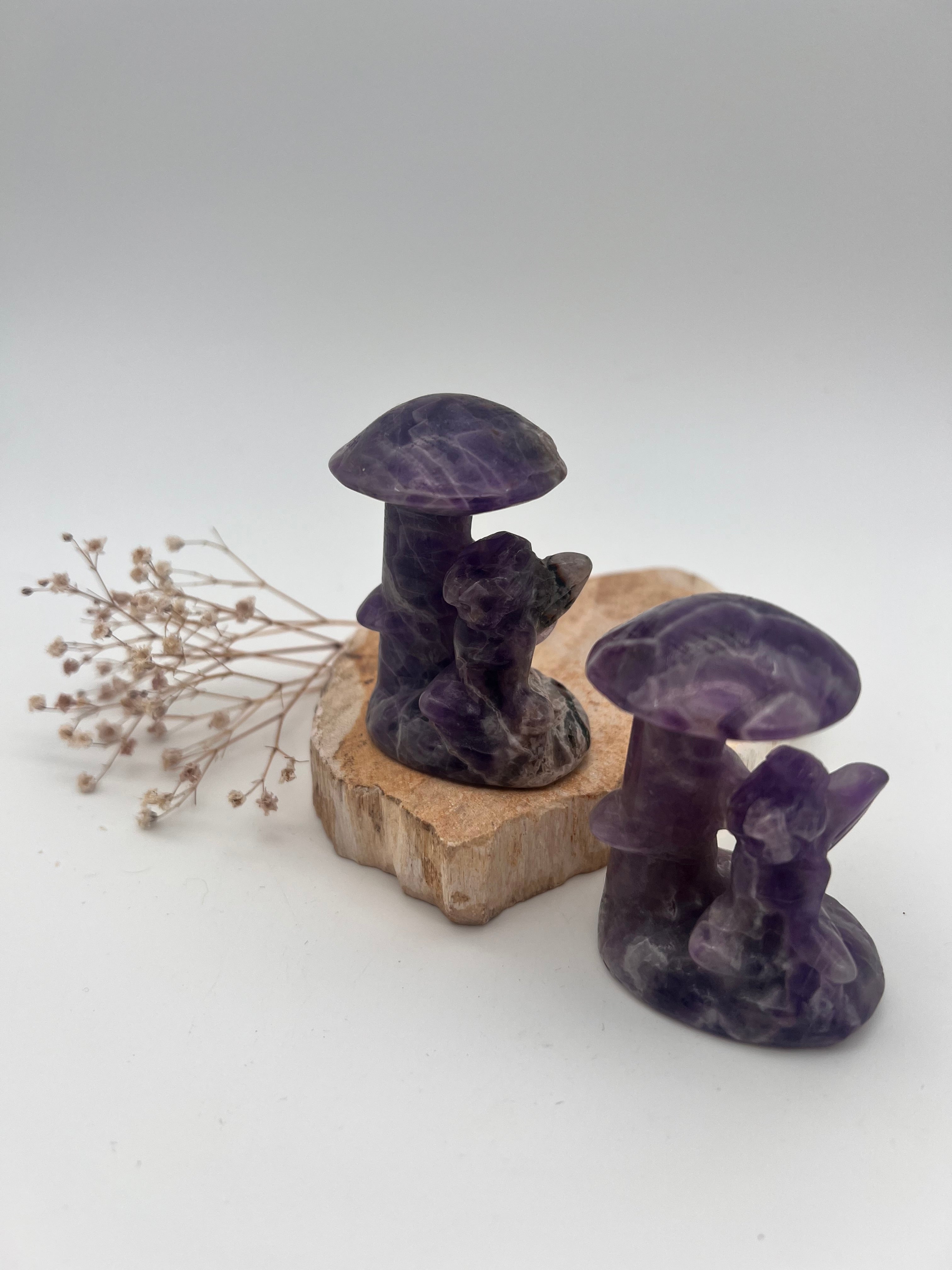Amethyst-Fee unter dem Pilz – Zauberhafte Stille & himmlischer Schutz