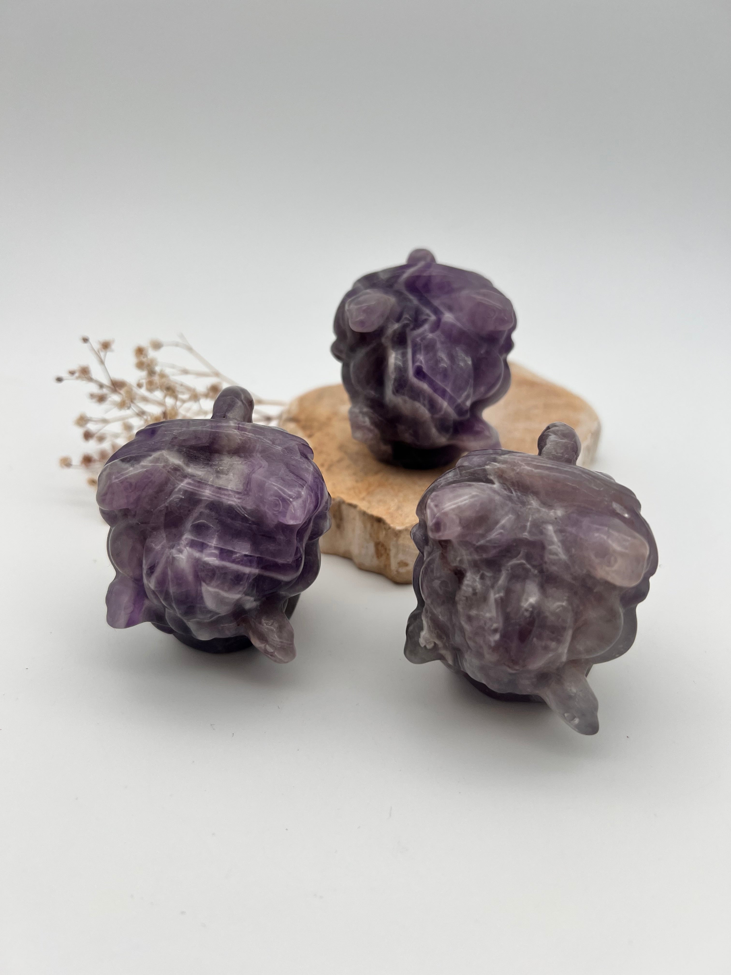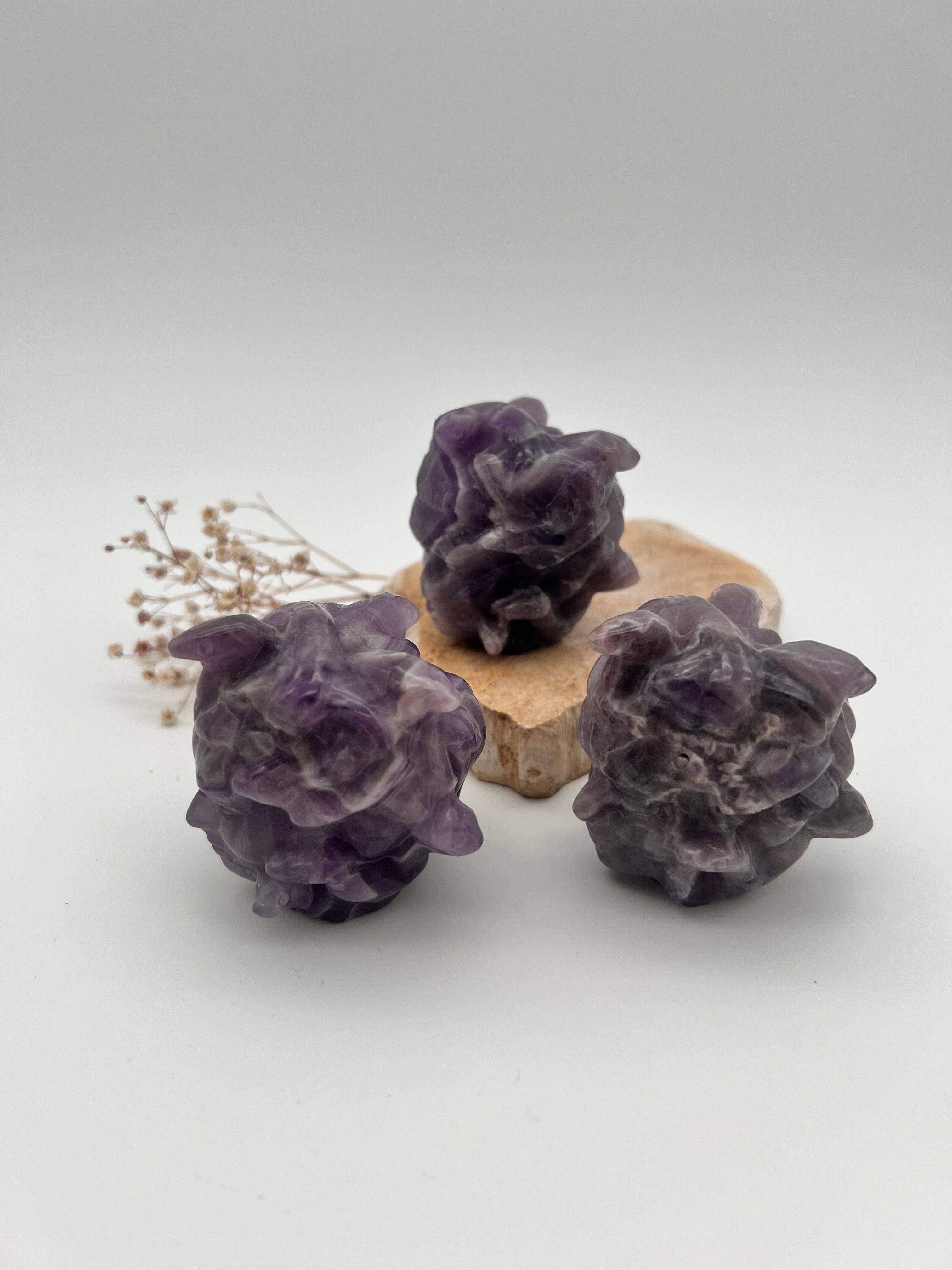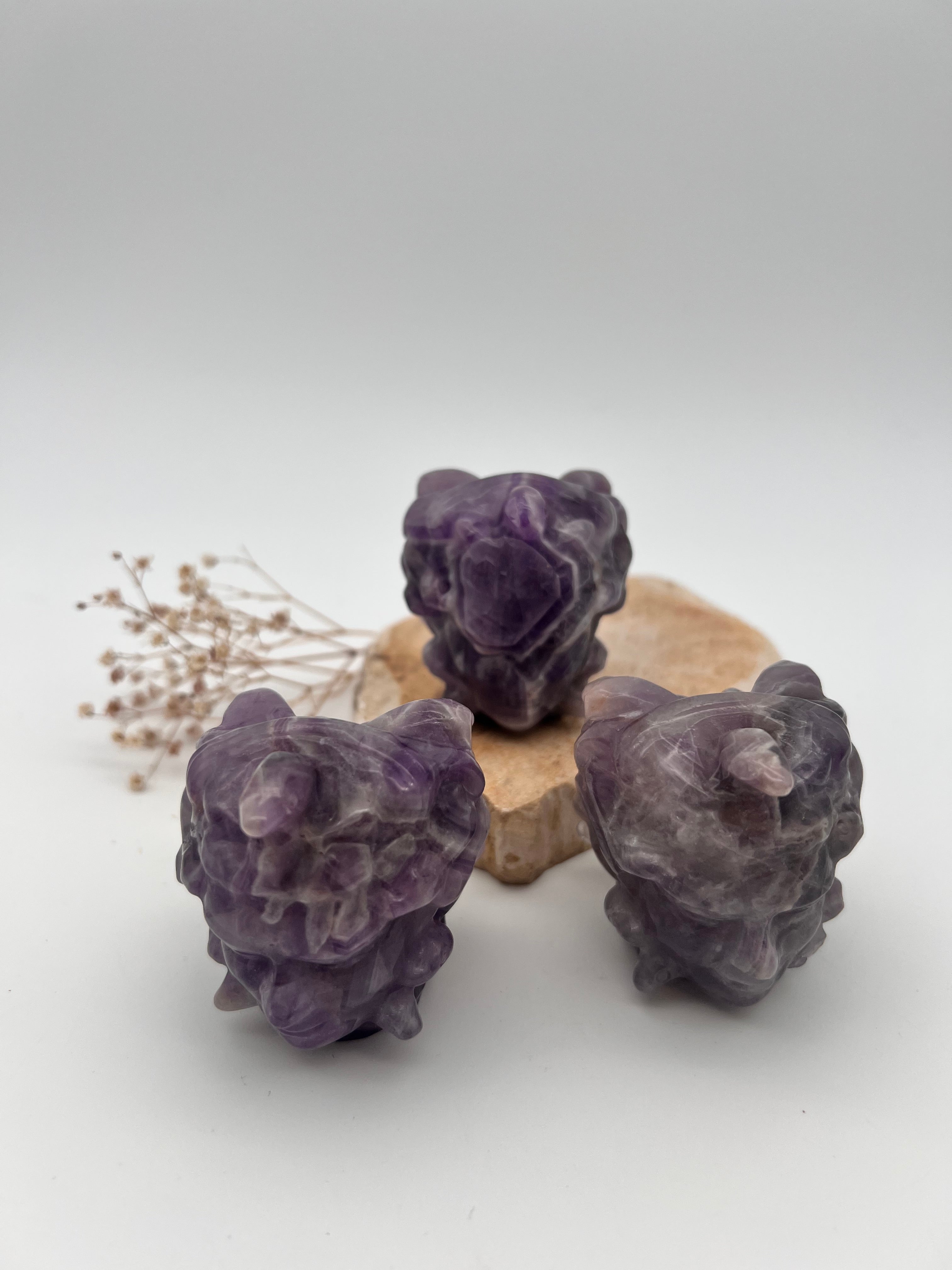 Amethyst beruhigt den Geist, stärkt die Intuition und unterstützt beim Loslassen belastender Gedanken. Als Medusa verkörpert er zusätzlich die Fähigkeit, sich abzugrenzen und negative Energien kraftvoll zurückzuweisen. Eine Figur für dein Sacred Space – schützend, magisch, tief verwurzelt im alten Wissen.