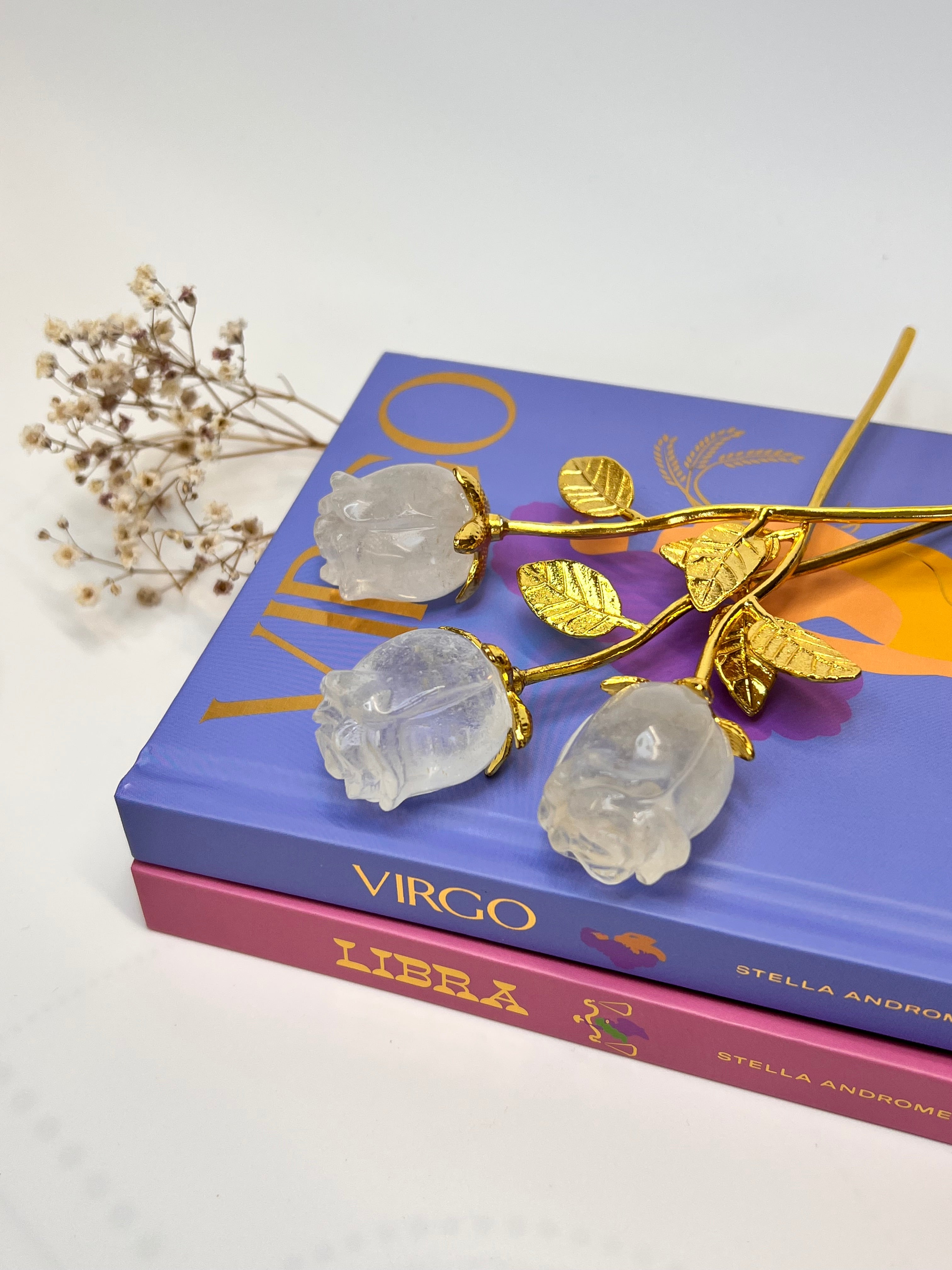 Dieser fein veredelte Bergkristall trägt die reine Energie des Lichts – nun umhüllt von einem Hauch roségoldener Wärme. Er verbindet geistige Klarheit mit einem Hauch von Sinnlichkeit, Eleganz und moderner Magie. Das Roségold verstärkt dabei nicht nur die ästhetische Wirkung, sondern bringt auch eine sanfte, herzöffnende Qualität in das klare Feld des Bergkristalls.