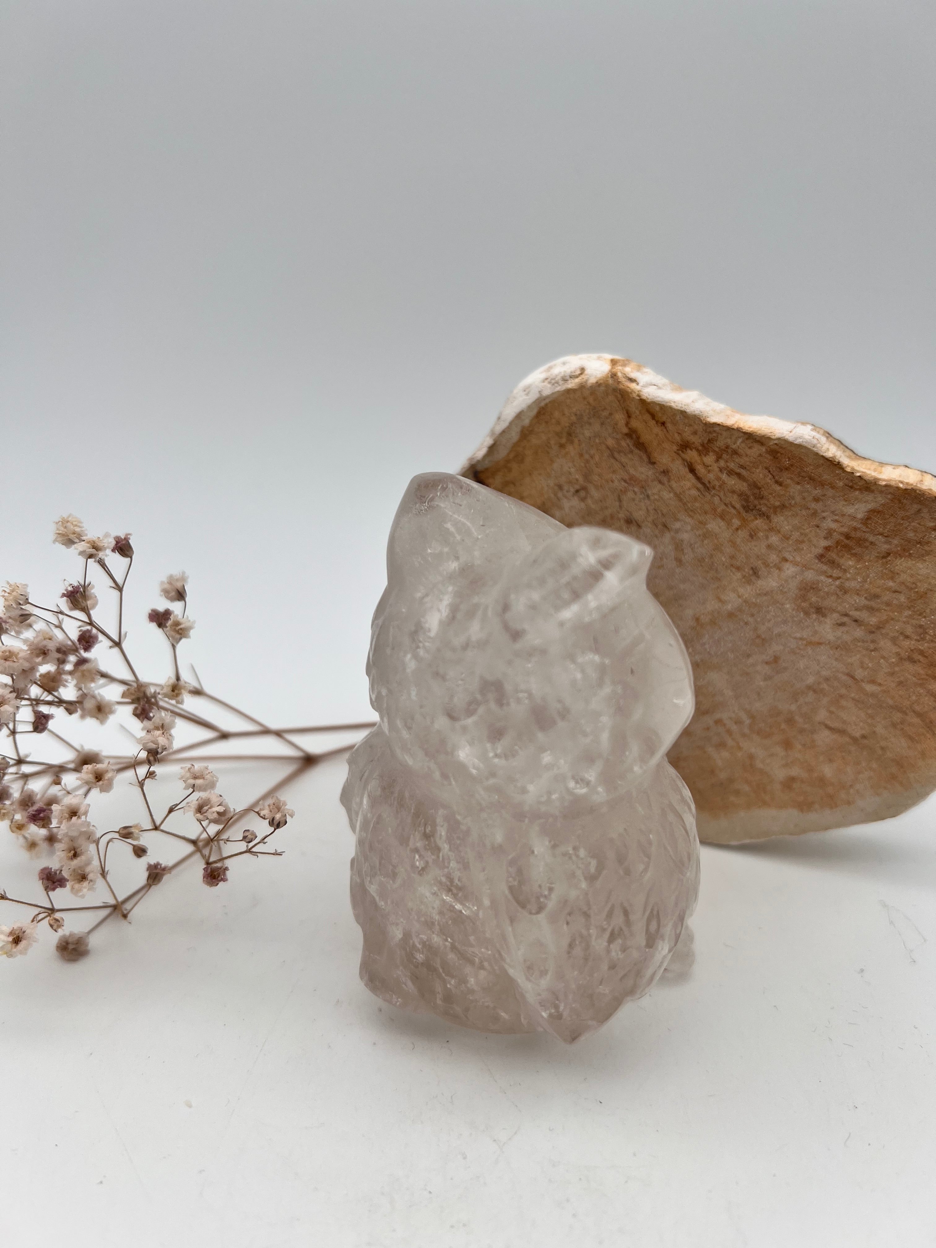 Diese fein gearbeitete Eule aus Bergkristall ist ein Symbol für Klarheit, Erkenntnis und stille Wachsamkeit. Als Tiergeist steht die Eule für tiefes Wissen, Intuition und die Fähigkeit, auch im Dunkeln zu sehen. Der Bergkristall verstärkt diese Qualitäten mit seiner lichtvollen Präsenz – er klärt, reinigt und verbindet dich mit deinem höchsten Selbst.