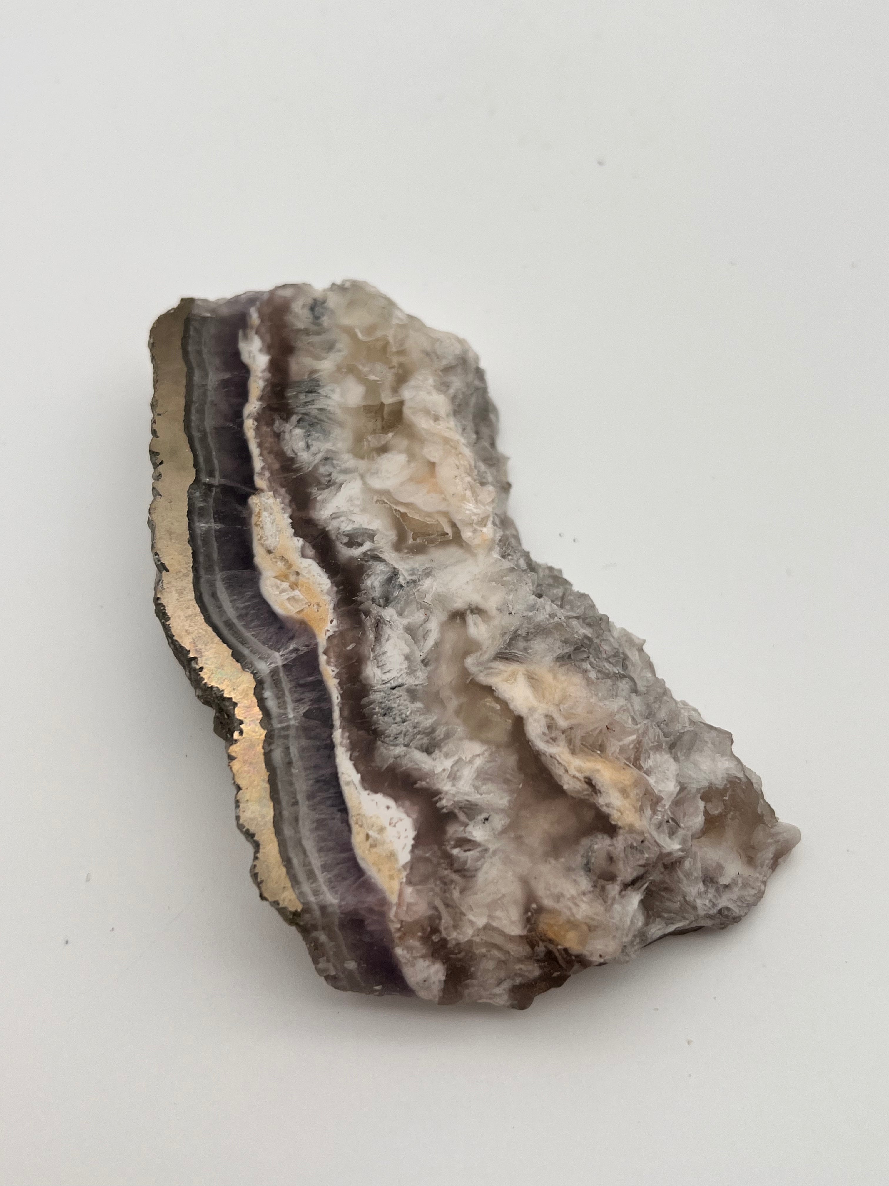 Dieses außergewöhnliche Einzelstück vereint die feinen, oft fast ätherisch wirkenden Strukturen des Federfluorits mit dem goldschimmernden, kraftvollen Glanz des Pyrits – eine seltene Kombination, die sowohl optisch als auch energetisch tief beeindruckt.