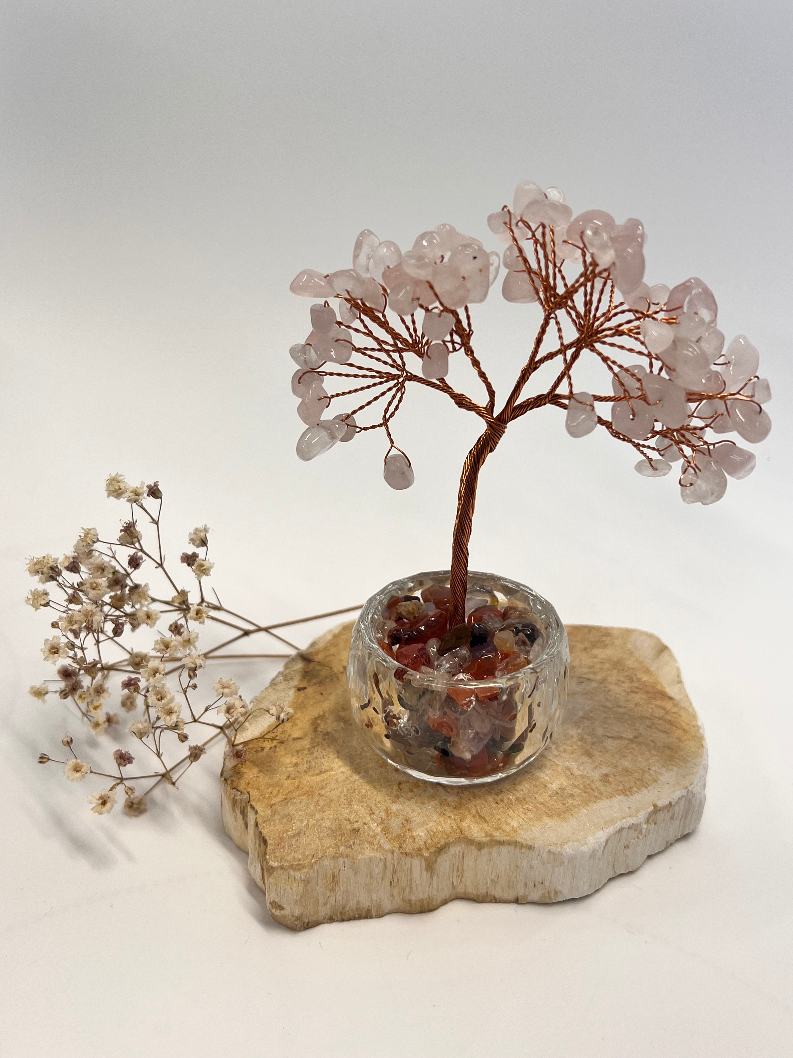 Dieser Baum bringt zarte Selbstliebe, Harmonie und Mitgefühl in deinen Alltag. Rosenquarz stärkt das Herzchakra und wirkt wie ein energetisches Lächeln für deinen Raum.