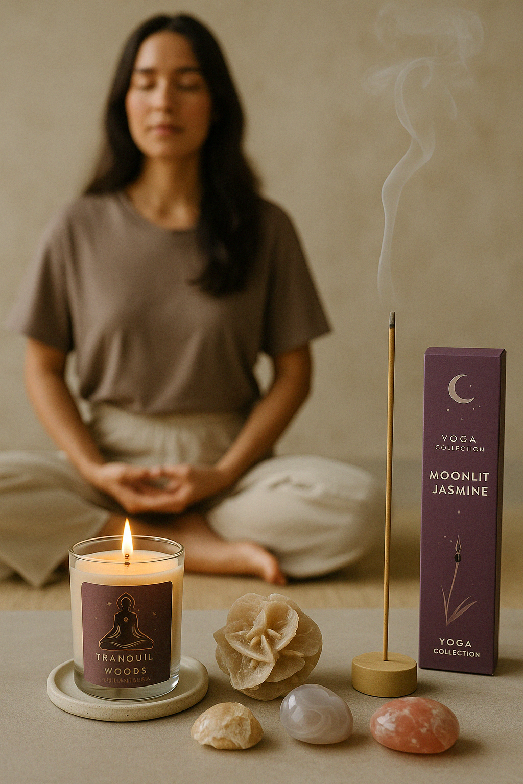 „Dieses Set begleitet dich in deine Stille. Es erinnert dich an deine innere Weisheit, deinen Atem, dein Licht. Für deine Yogapraxis, für Meditation oder einfach für einen heiligen Moment mit dir selbst.“