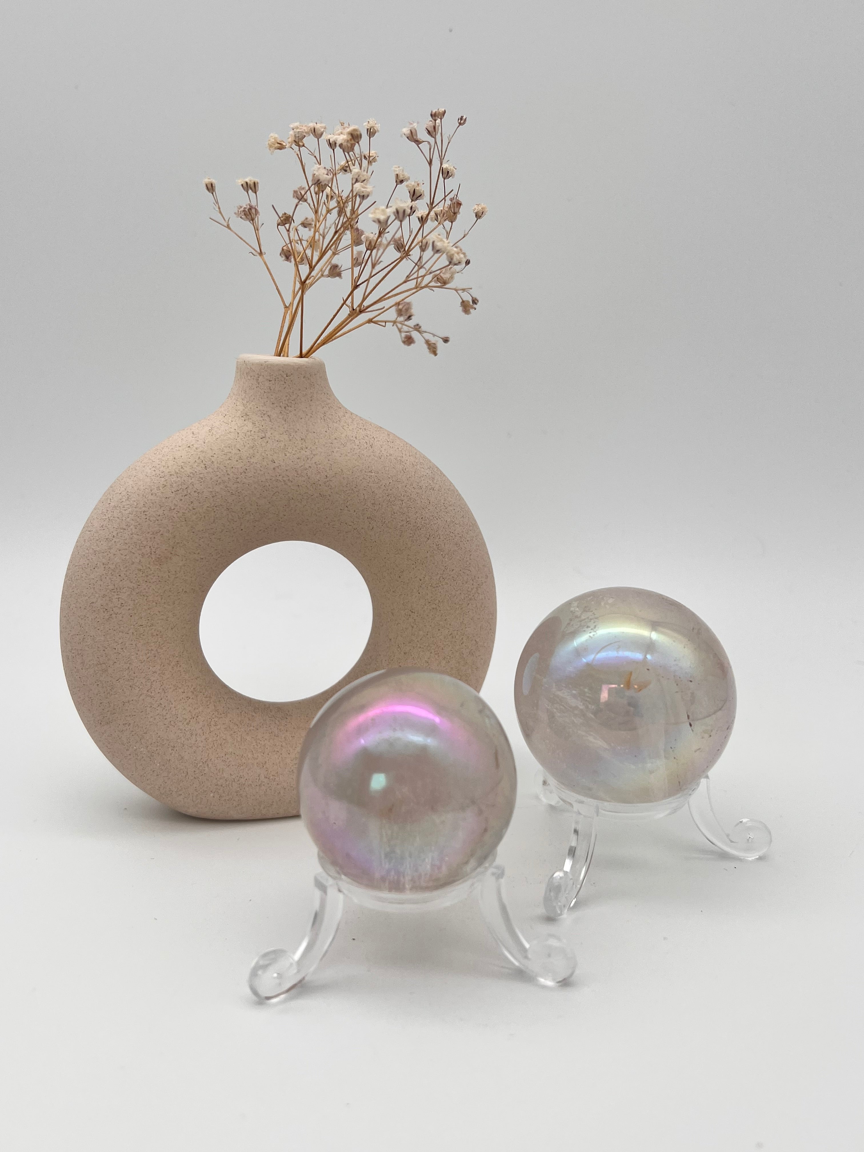 Der Angel Aura ist ein zauberhafter Kristall mit einem sanften, regenbogenartigen Schimmer. Seine schillernde Optik entsteht durch die Bedampfung von natürlichem Bergkristall mit wertvollen Metallen wie Platin oder Silber. Dies verleiht ihm eine fast ätherische Ausstrahlung und eine besonders hohe energetische Schwingung.