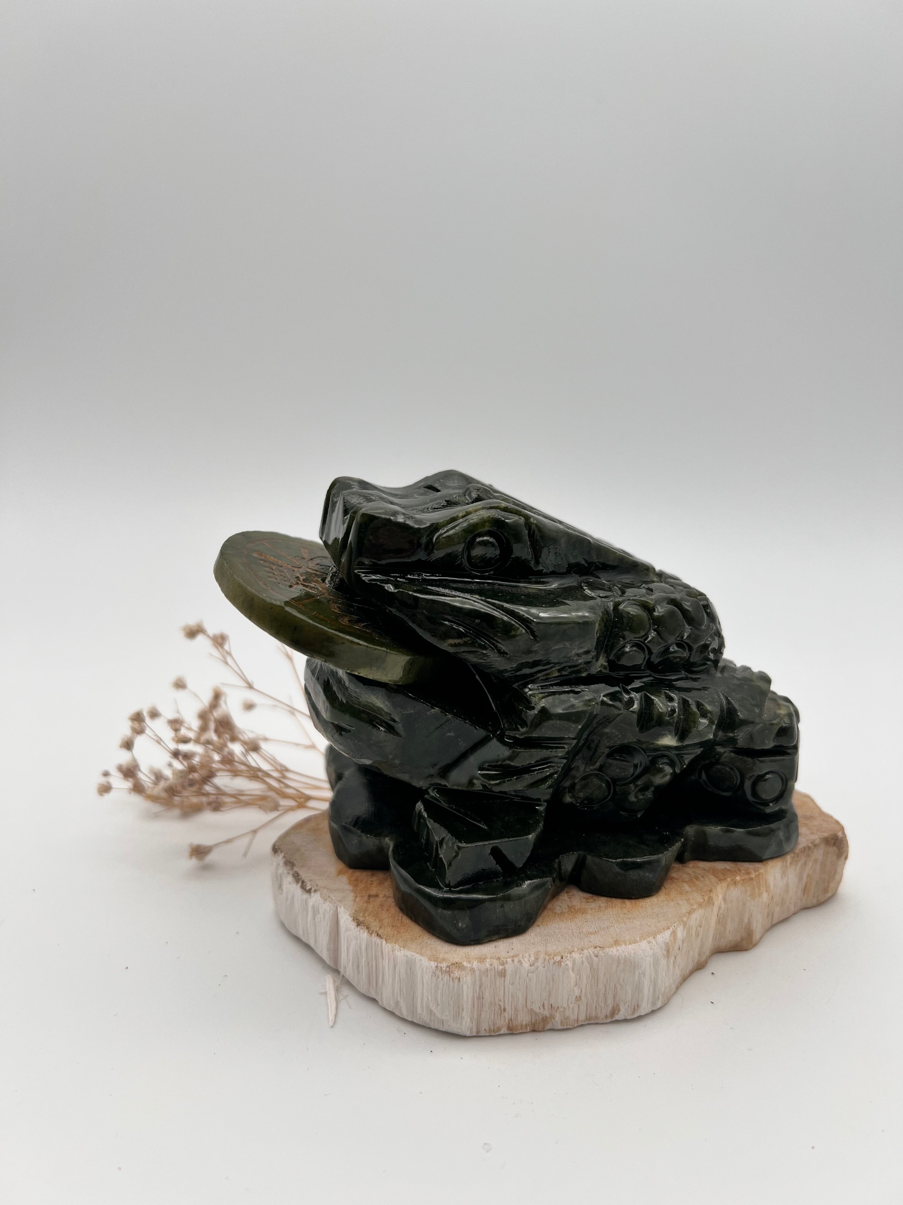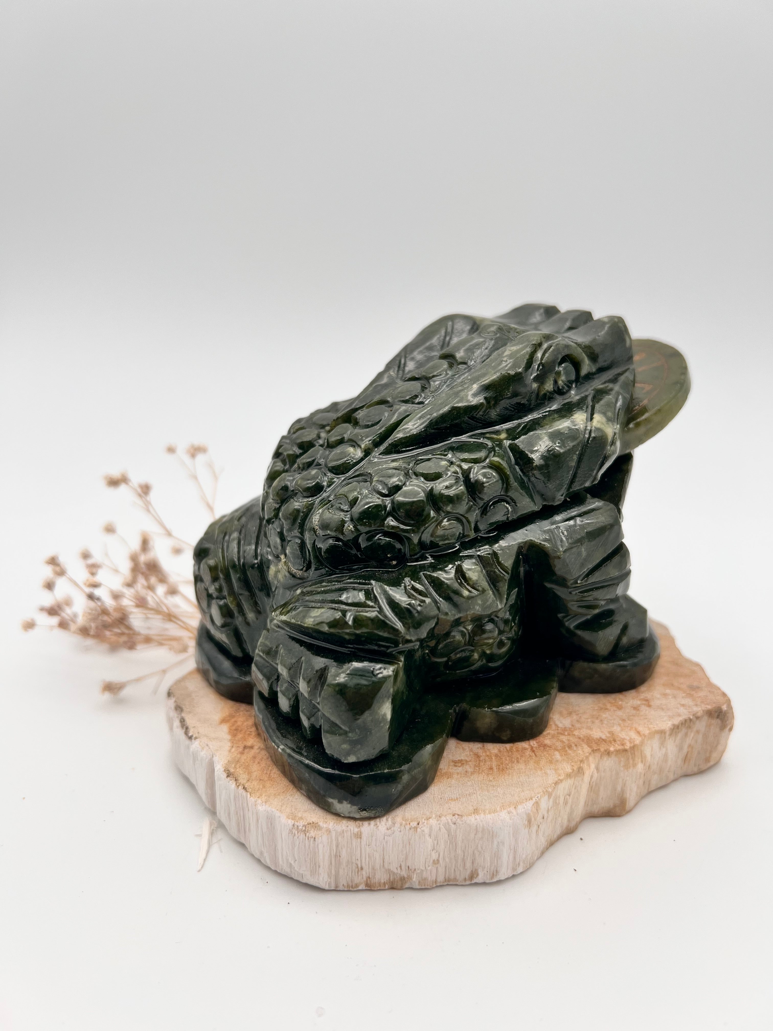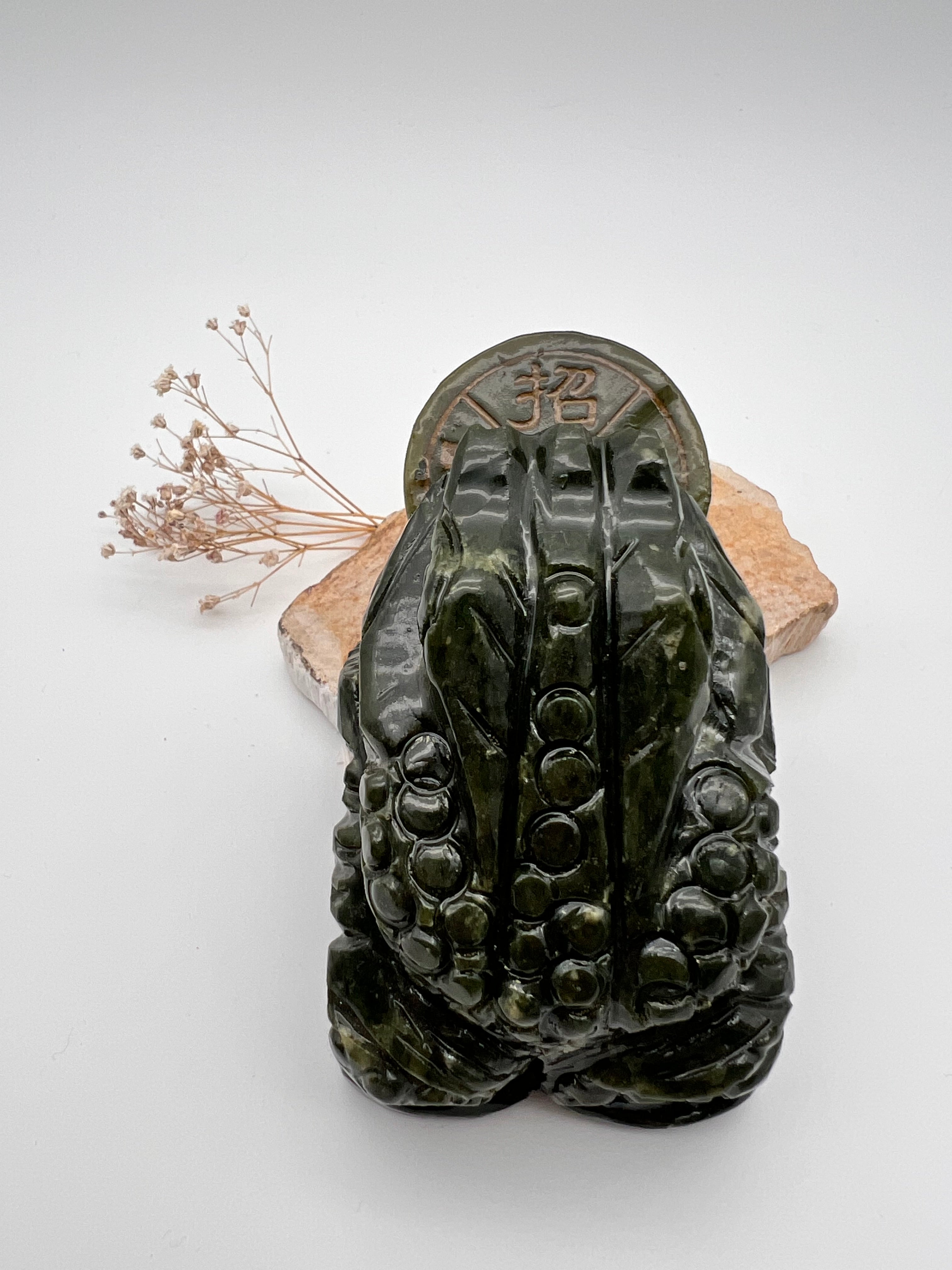 Der Money Frog (auch Feng Shui Glücksfrosch oder Dreibeiniger Krötenfrosch genannt) ist ein kraftvoller Symbolträger für Reichtum, Wohlstand und finanziellen Zufluss. Gefertigt aus tiefgrüner Jade – dem Stein der inneren Balance, des Wohlstands und der Harmonie – wird er zu deinem persönlichen Beschützer deiner Geldenergie.
