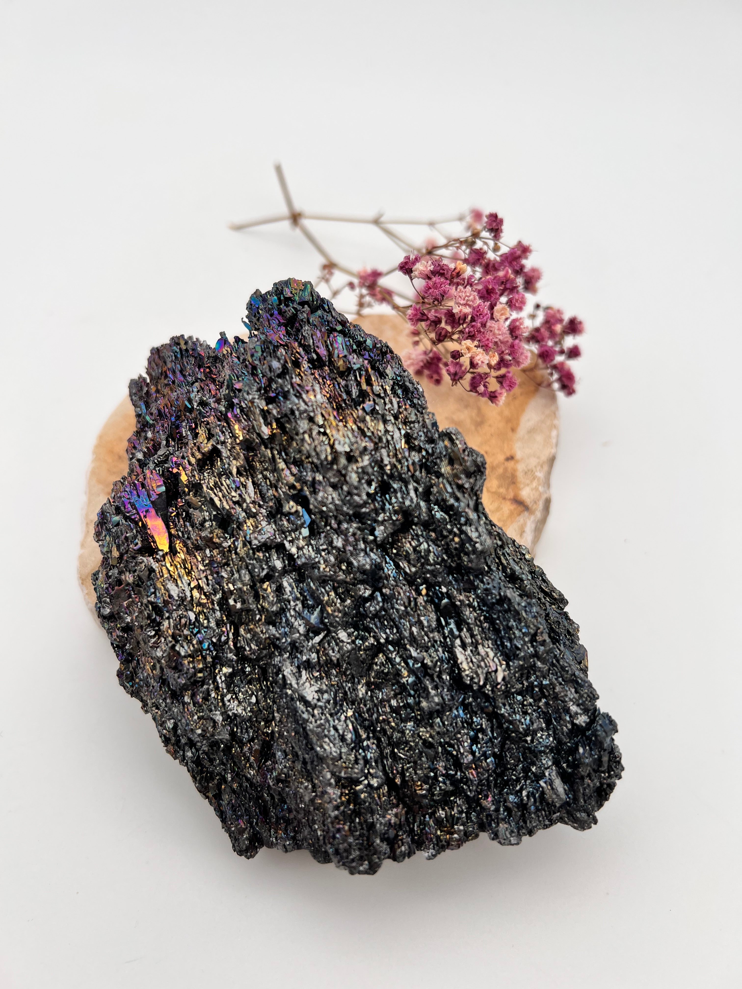 Dieses leuchtend schillernde Rohstück ist nicht nur ein echter Hingucker, sondern auch ein kraftvoller energetischer Begleiter. Pfauenerz, auch bekannt als Bornit, zeigt sich in faszinierenden Farben von Türkis über Violett bis Gold – wie das Gefieder eines magischen Vogels.