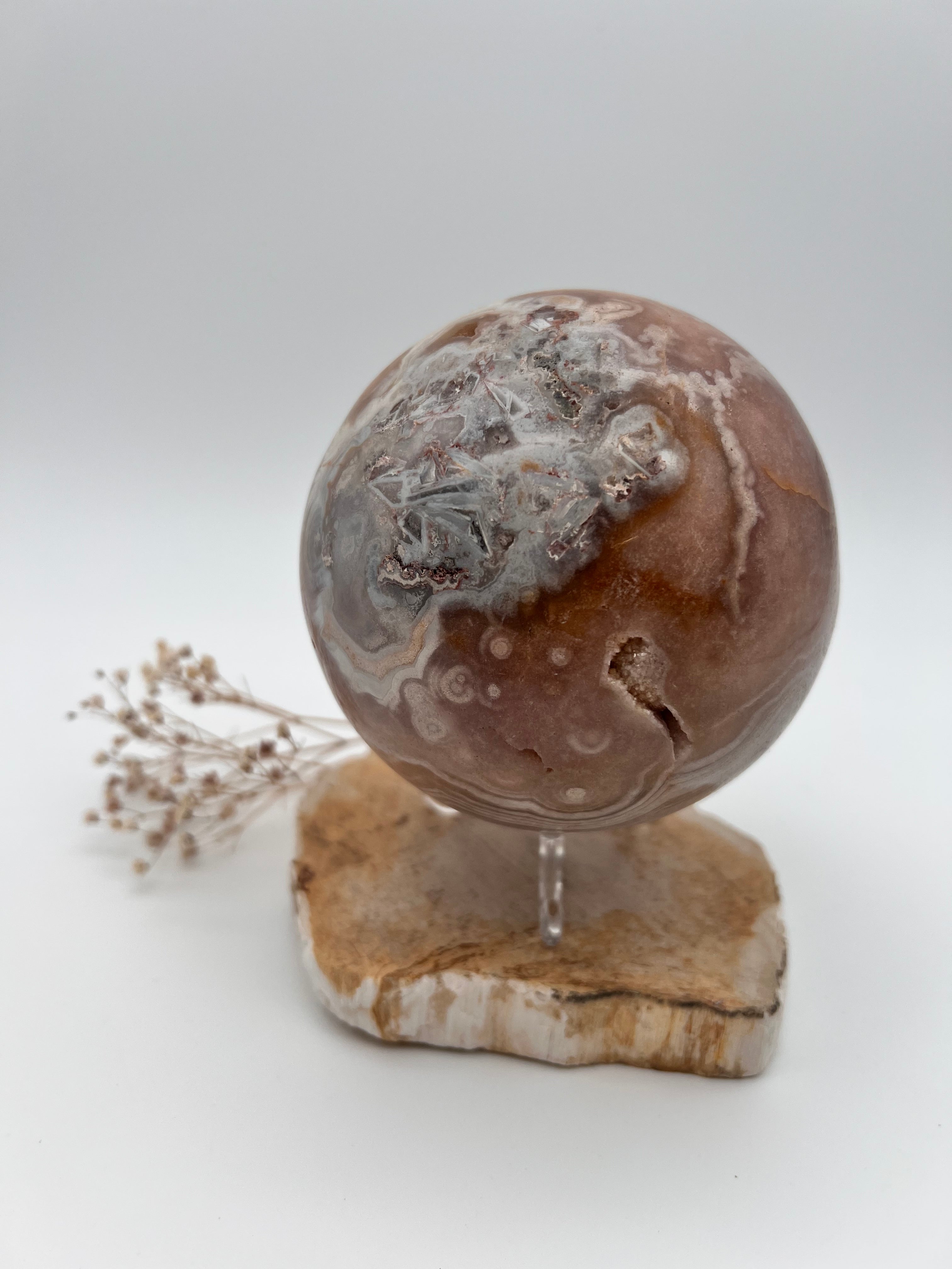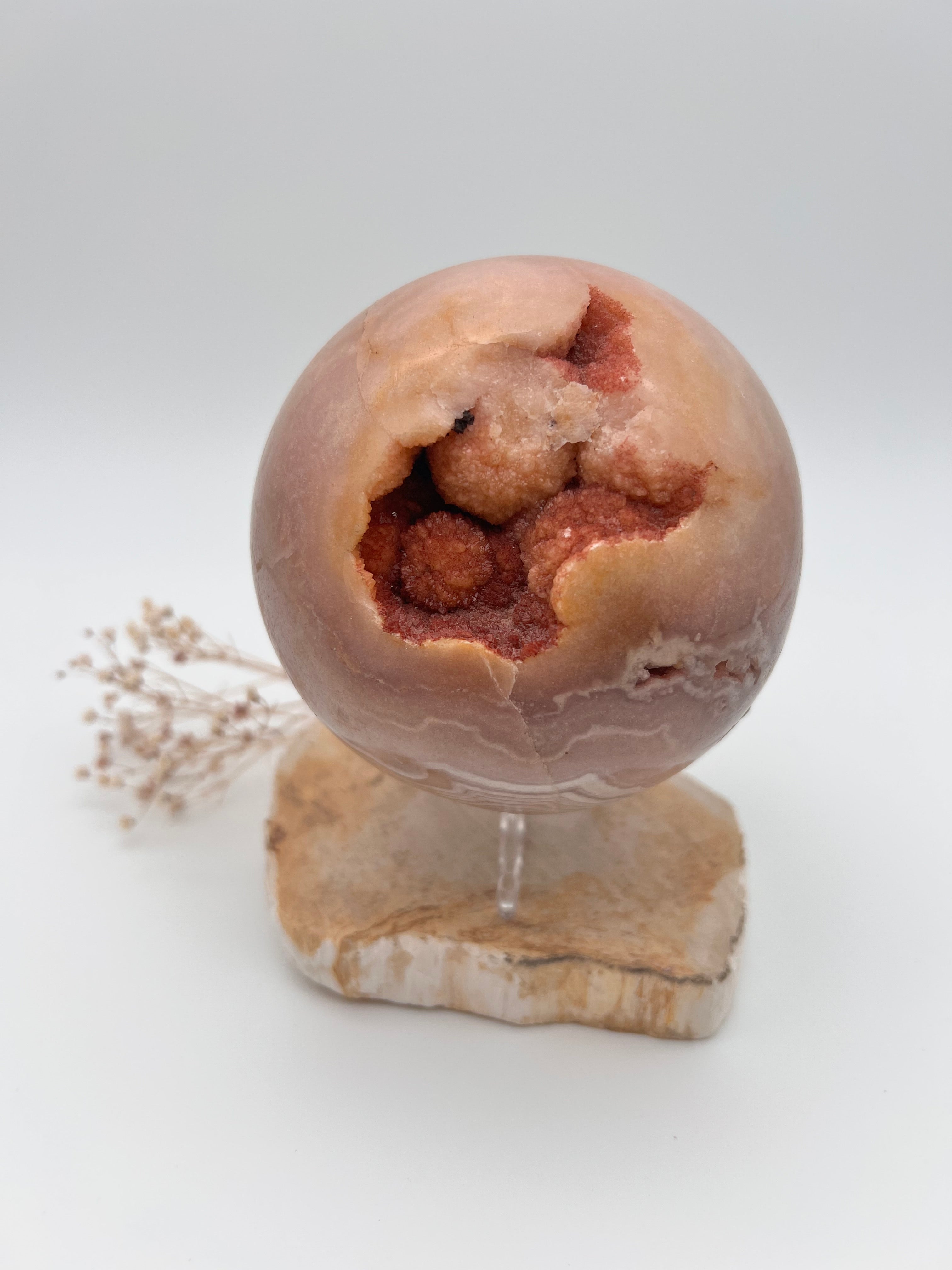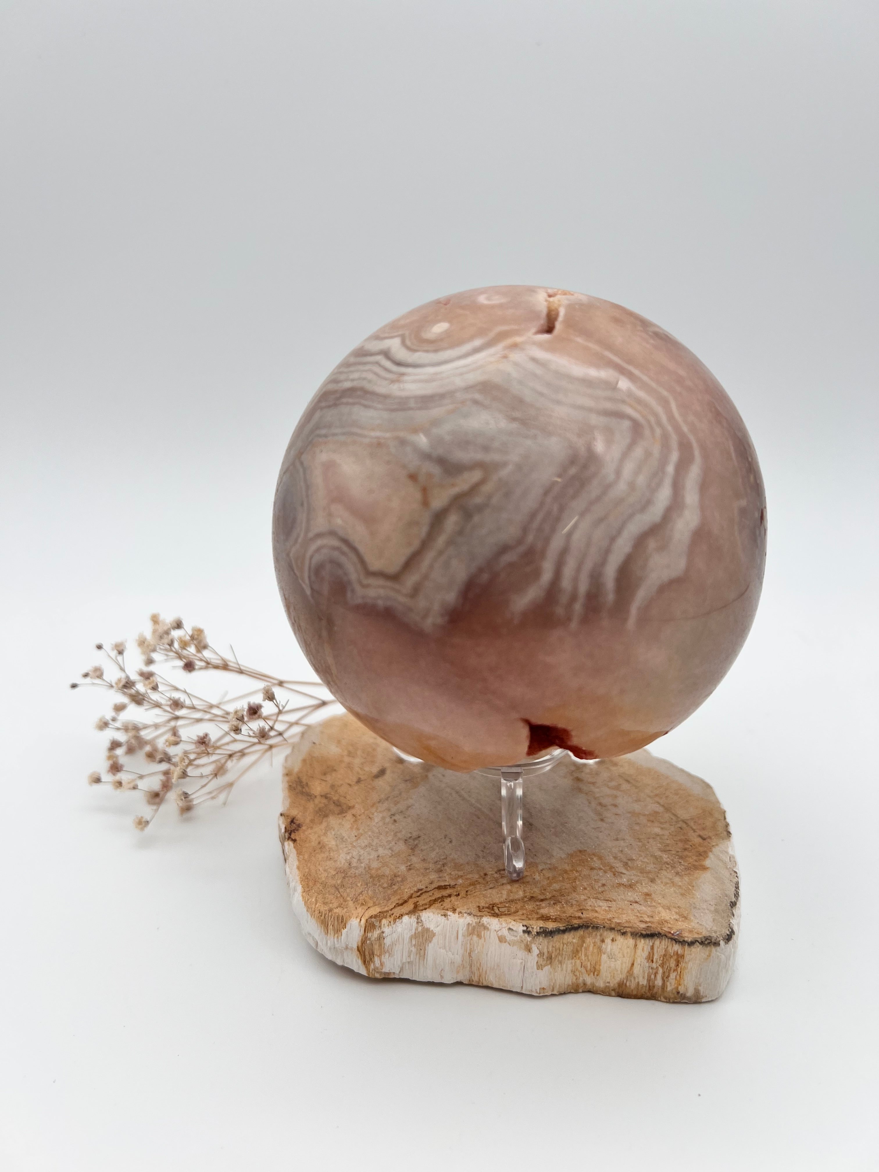 Diese zarte Pink Amethyst Kugel vereint die beruhigende, klärende Energie des klassischen Amethysts mit einer sanften Herzschwingung. Ihre weichen Rosétöne und die natürliche Geodenstruktur im Inneren erinnern daran, dass wahre Schönheit und Stärke oft verborgen unter der Oberfläche liegen und nur darauf warten, entdeckt zu werden.