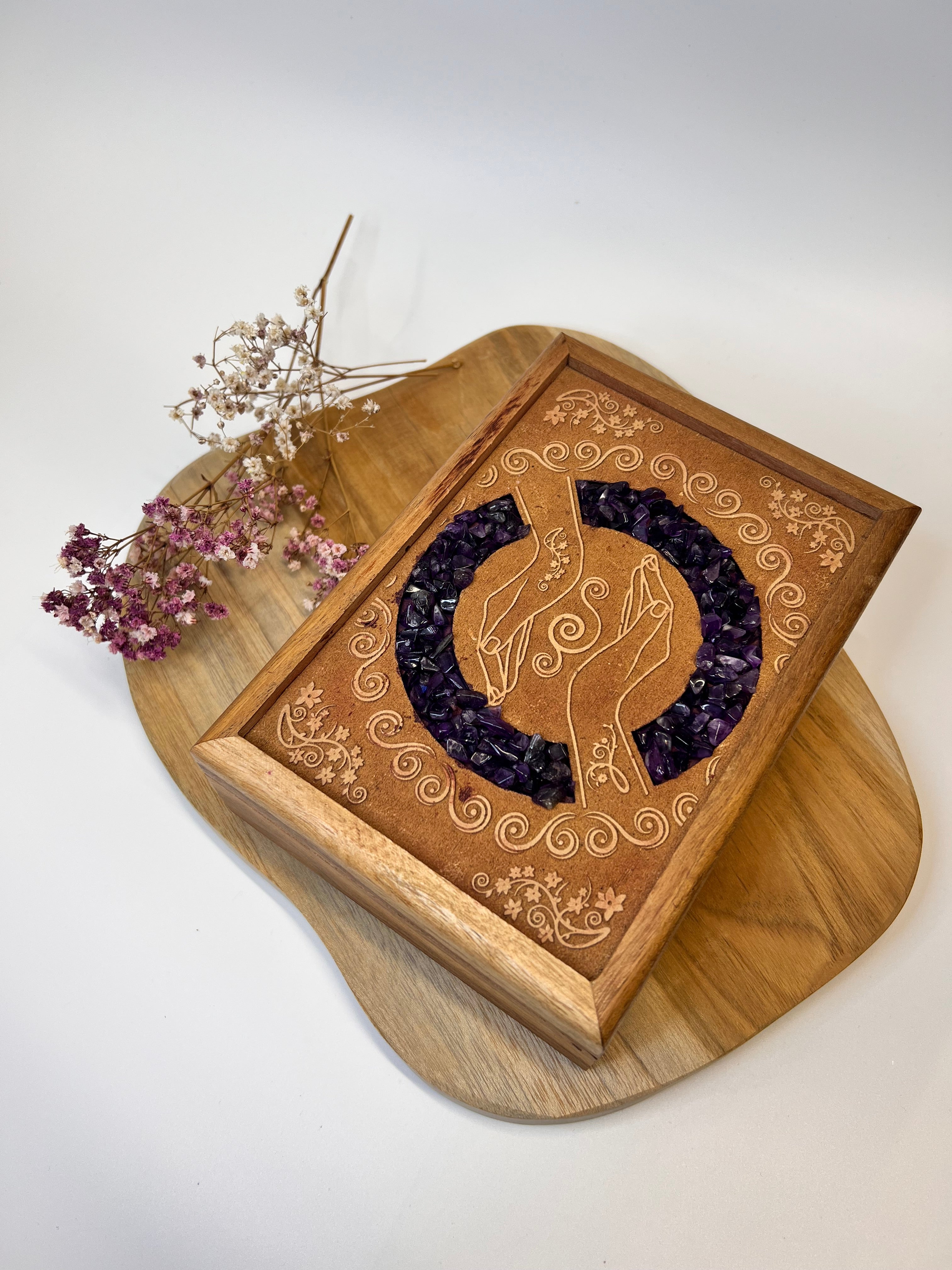 Holz Schachtel - Amethyst Heilende Hände