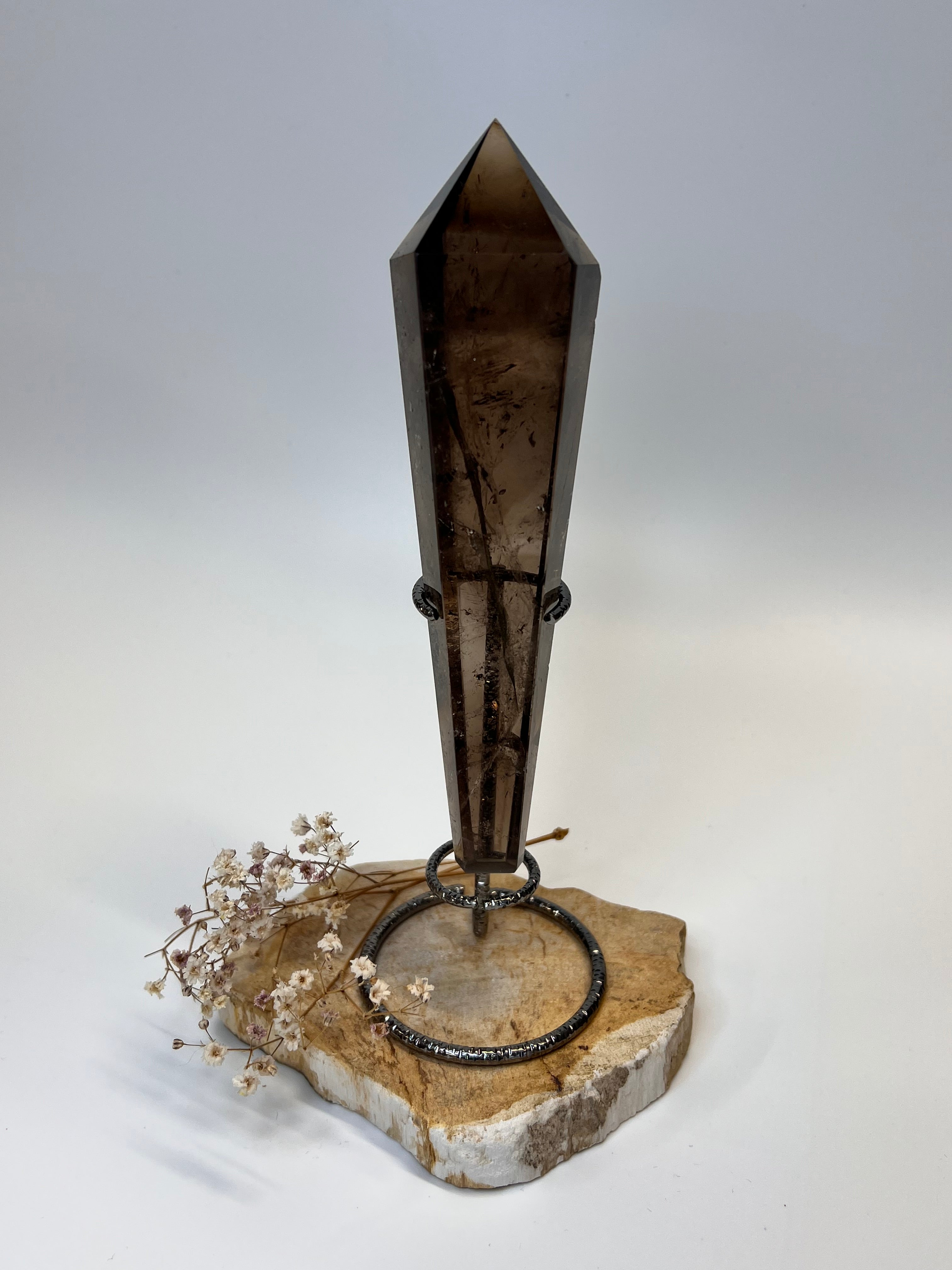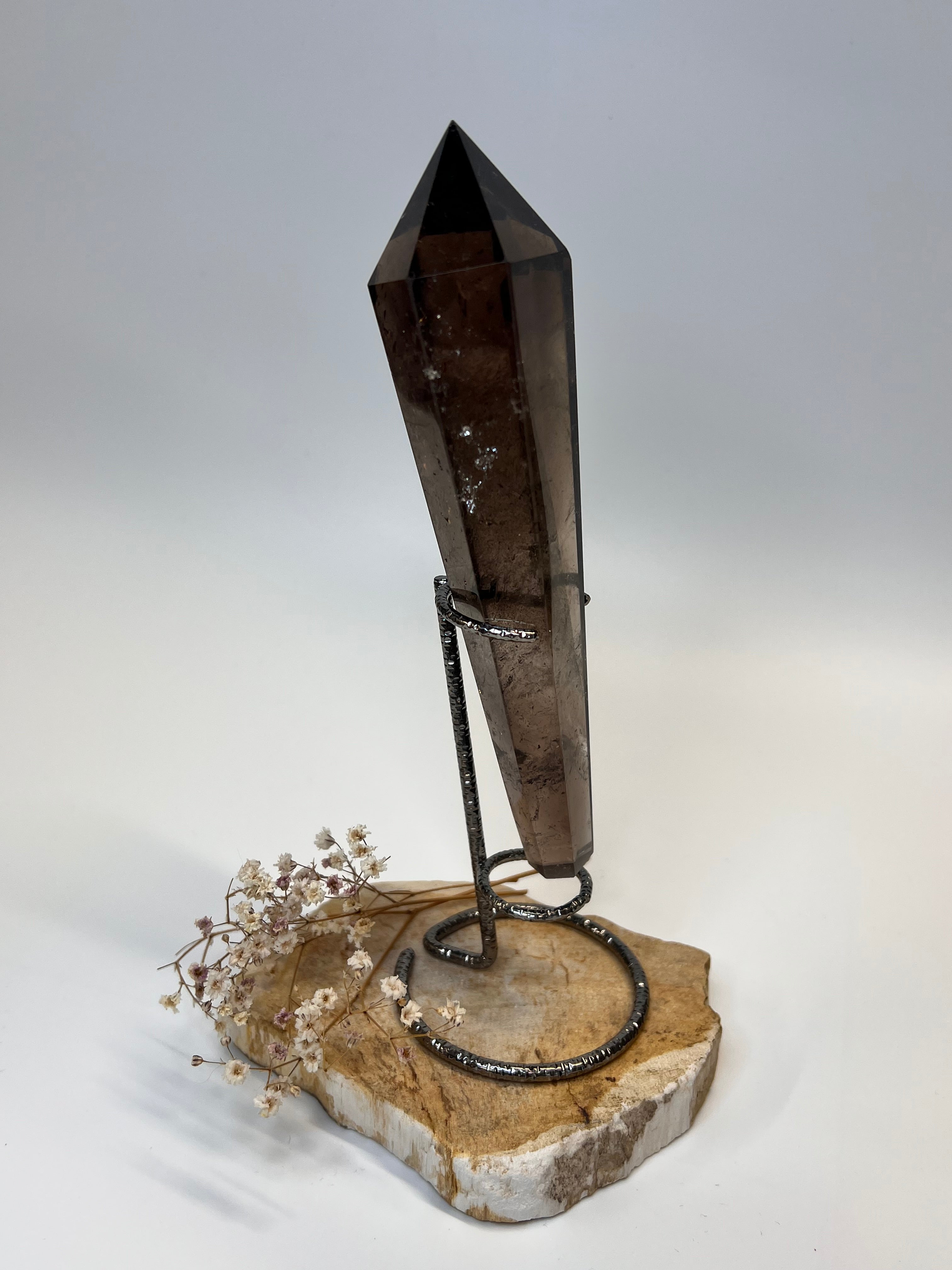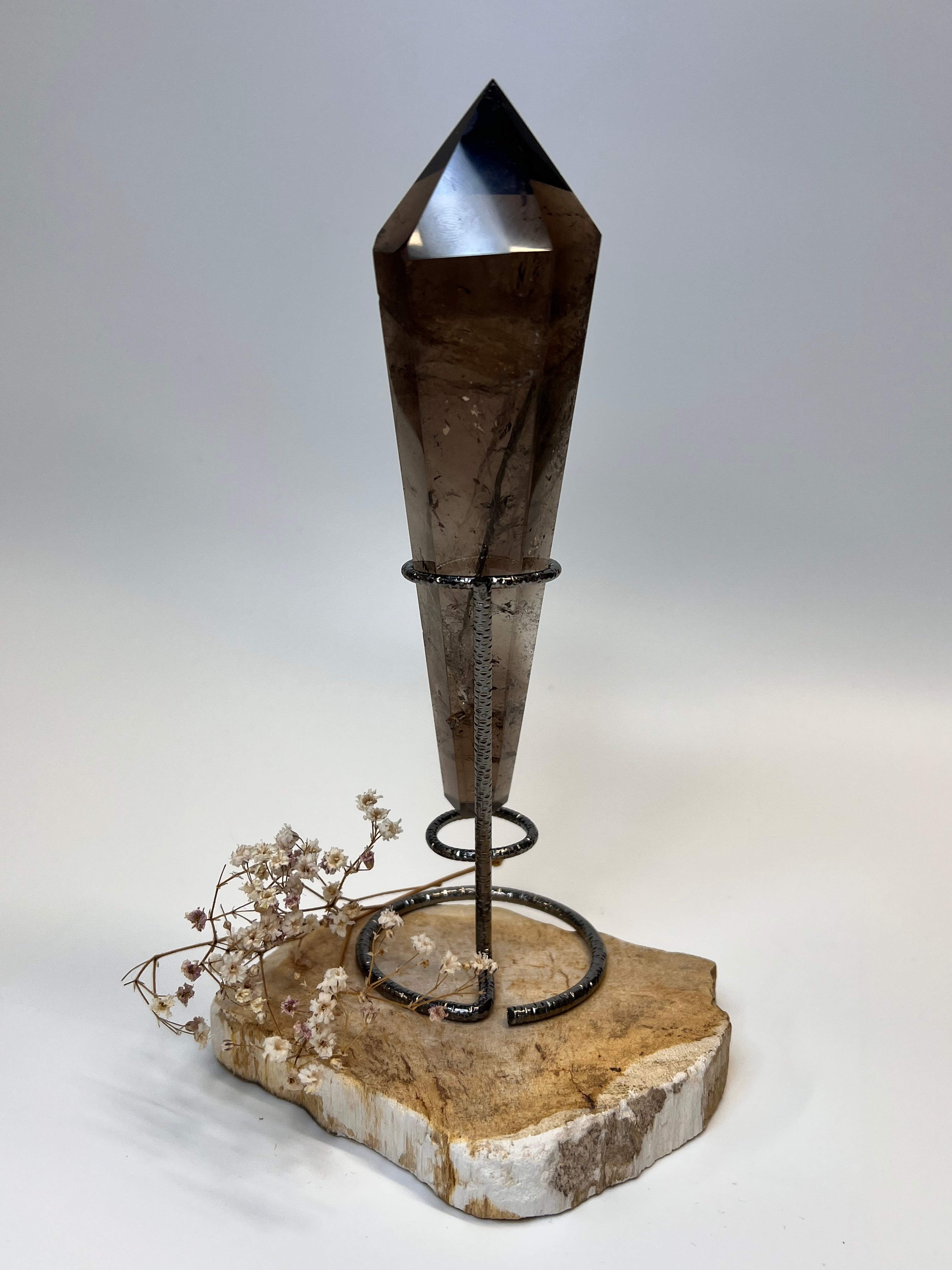 Rauchquarz Spitze auf Ständer – Erdung, Schutz & innere Stabilität