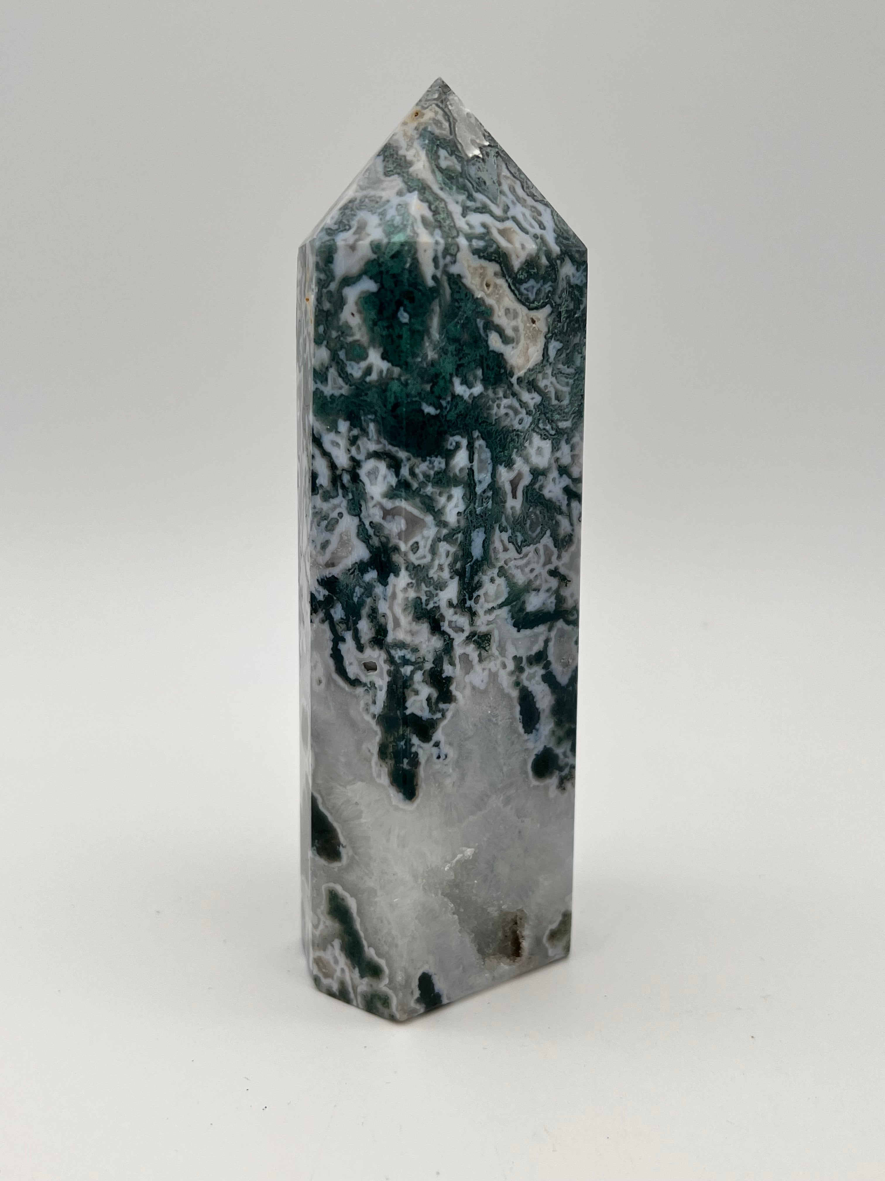 Moosachat unterstützt den persönlichen und spirituellen Wachstum. Er ermutigt dazu, sich selbst besser kennenzulernen und alte Muster oder Blockaden zu überwinden. Der Stein hilft, sich von negativen Erfahrungen oder Emotionen zu befreien und neue Perspektiven zu entwickeln.