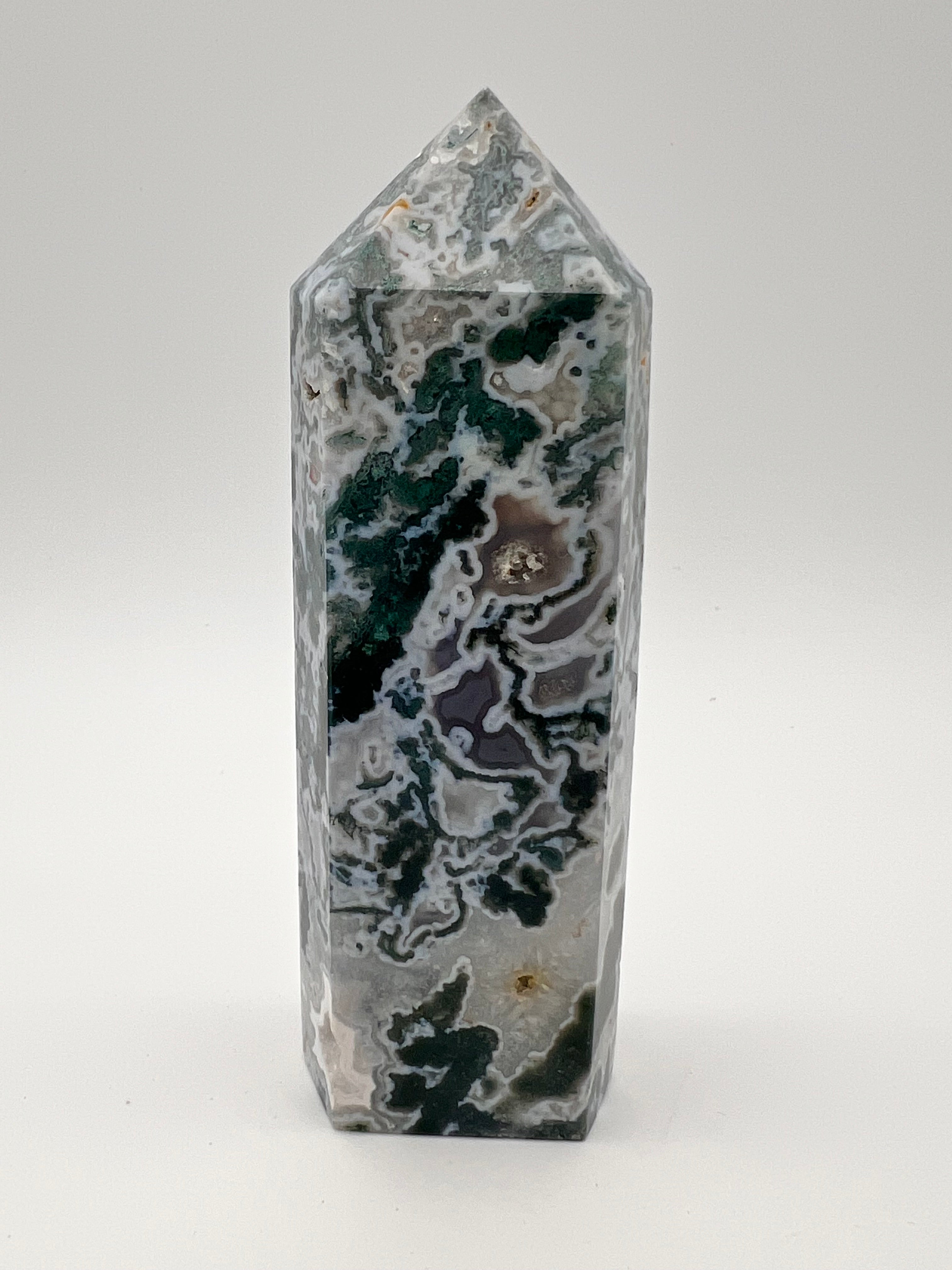 Moosachat ist ein vielseitiger Heilstein, der Erdung, persönliches Wachstum, emotionale Heilung und Kreativität fördert. Seine unterstützenden Eigenschaften machen ihn zu einem wertvollen Begleiter für alle, die sich nach Balance, Inspiration und Wohlstand sehnen.