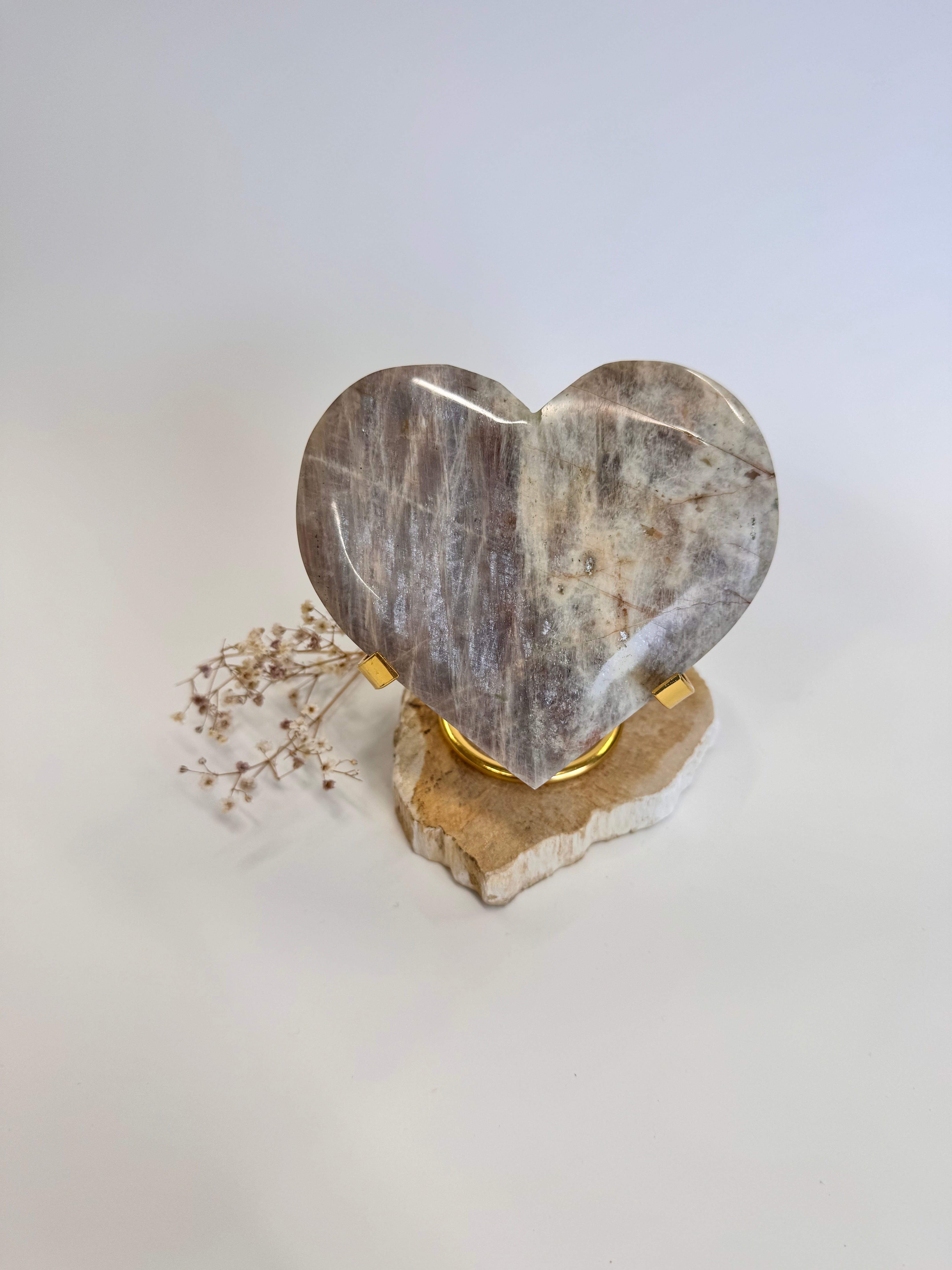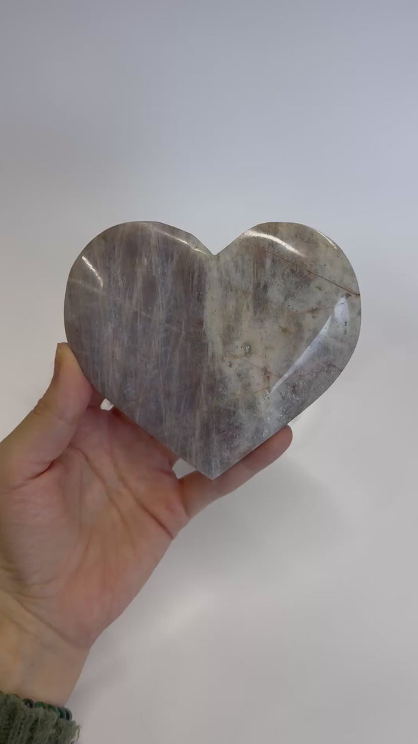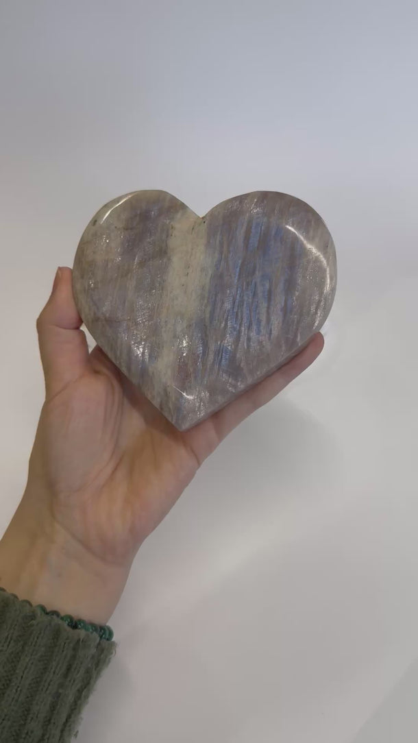 Dieses ca. 12 x 11 cm große Mondstein-Herz ist ein kraftvolles Statement-Piece.
