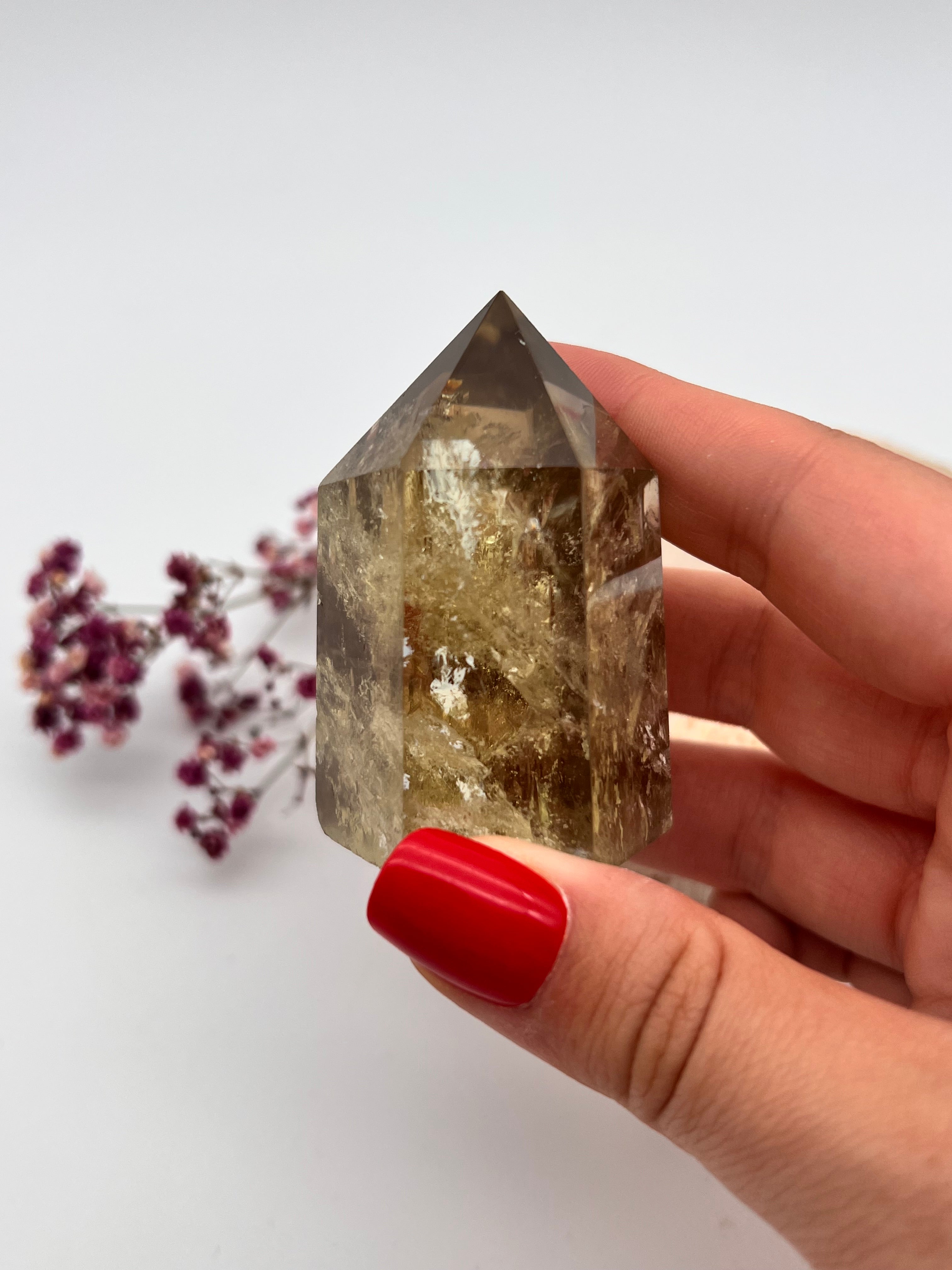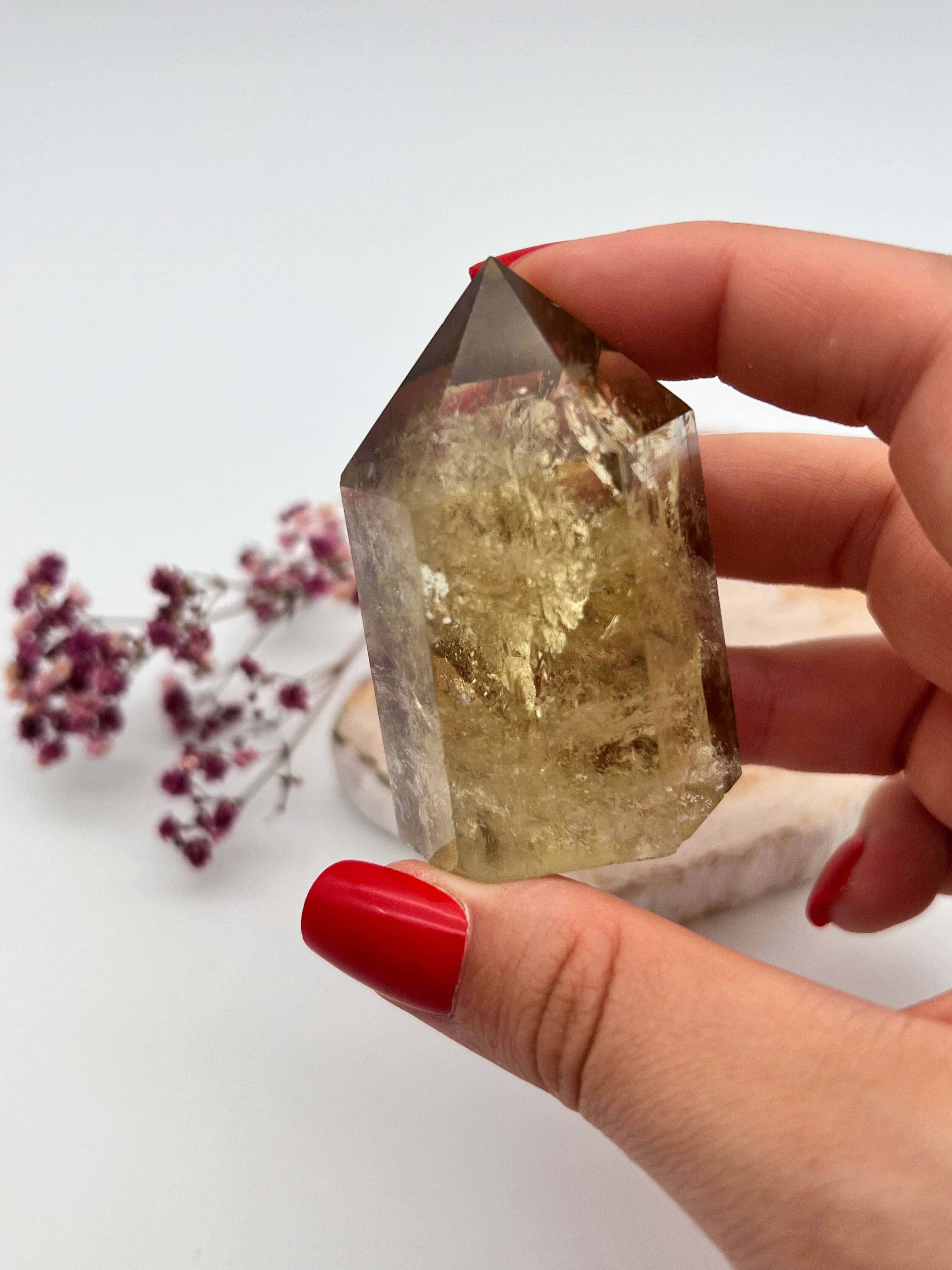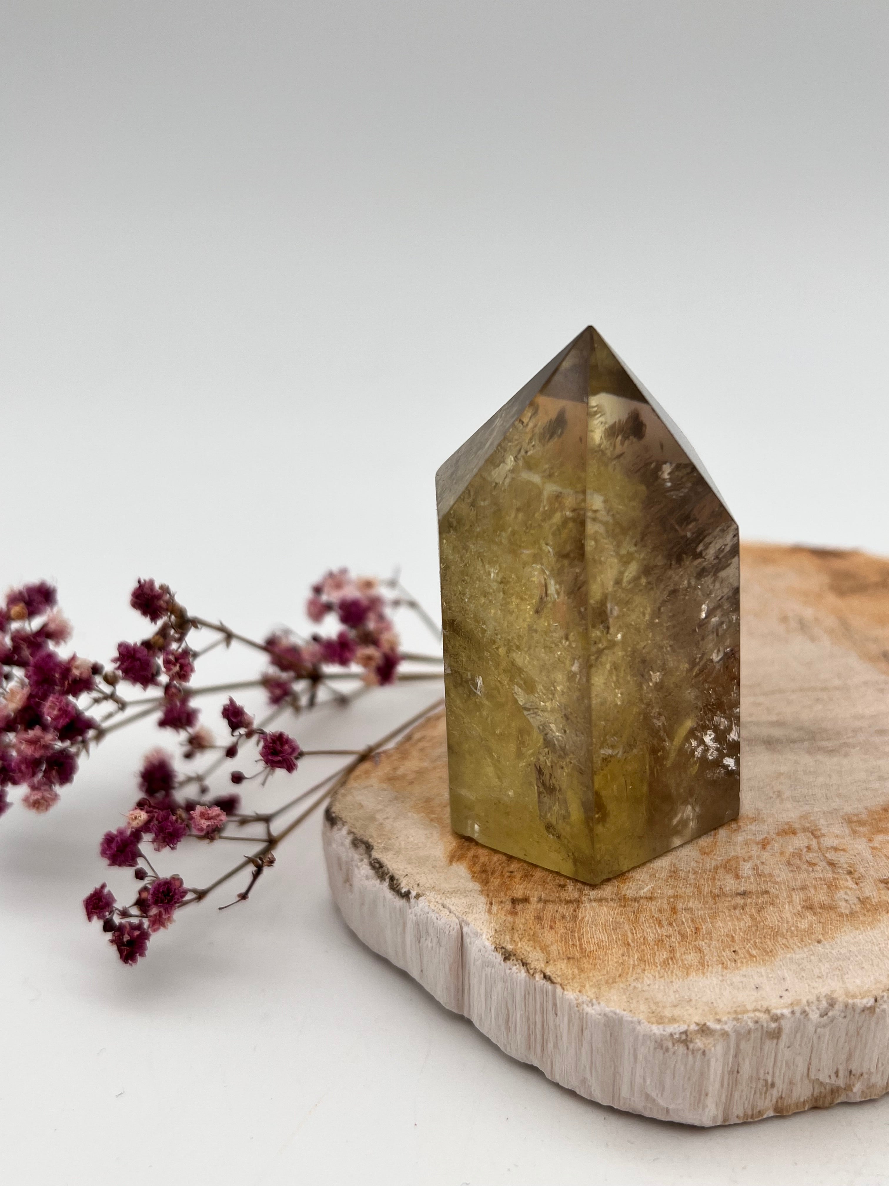 Diese hochwertige Citrin-Spitze trägt die warme, goldene Energie der Sonne in sich – klar, strahlend und voller Lebenskraft. Citrin gilt als kraftvoller Begleiter für Selbstvertrauen, Erfolg und innere Aufrichtung. In Spitzenform wirkt er zusätzlich fokussierend und ausrichtend – ideal für Manifestationen, Lichtarbeit, Altäre oder deinen Arbeitsplatz.