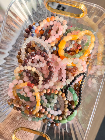 Bei diesem Angebot erhältst du ein intuitiv ausgewähltes Edelsteinarmband aus meiner Armband-Kollektion. Jedes Armband besteht aus echten Edelsteinen und wurde mit viel Liebe zusammengestellt.