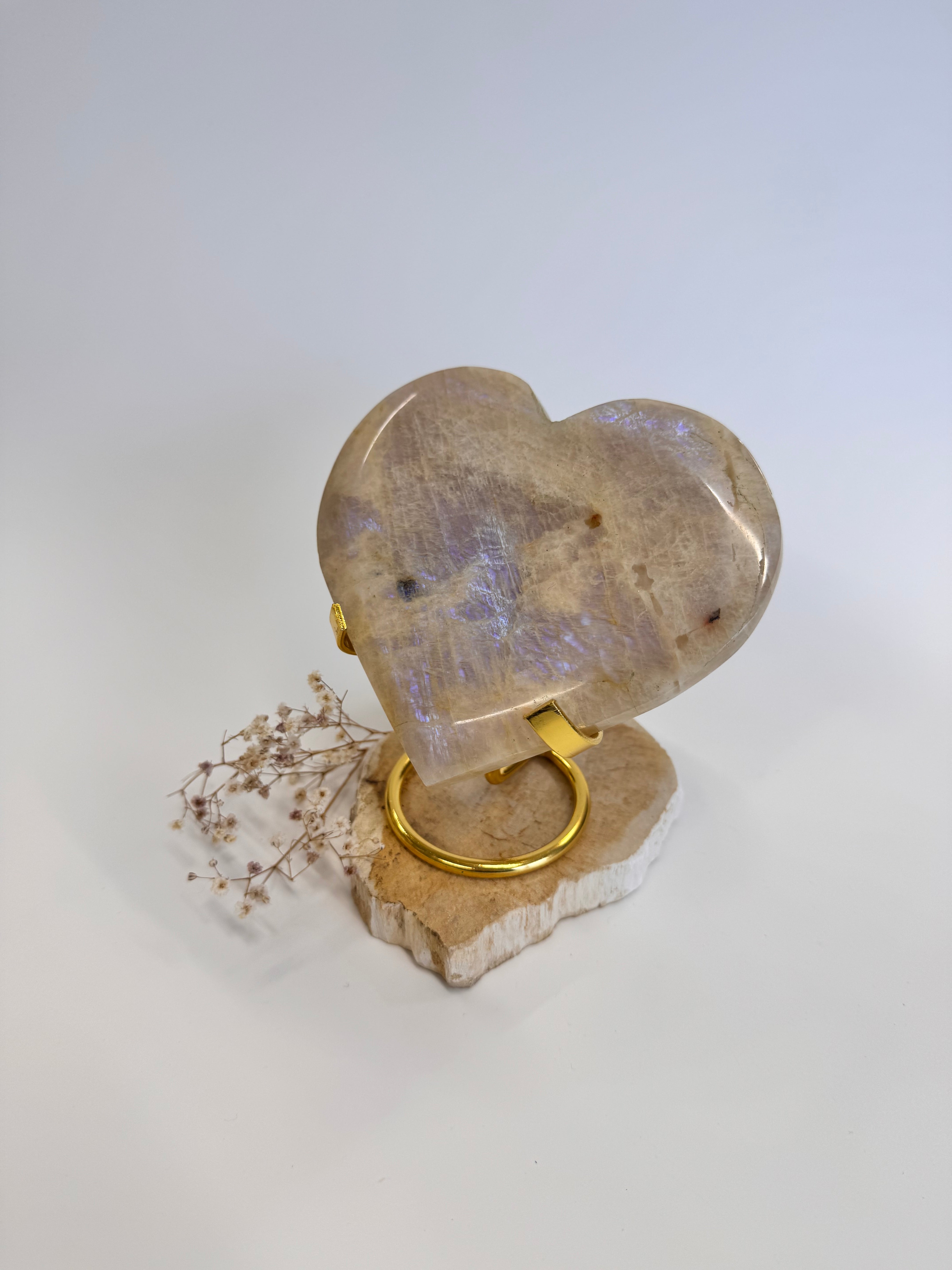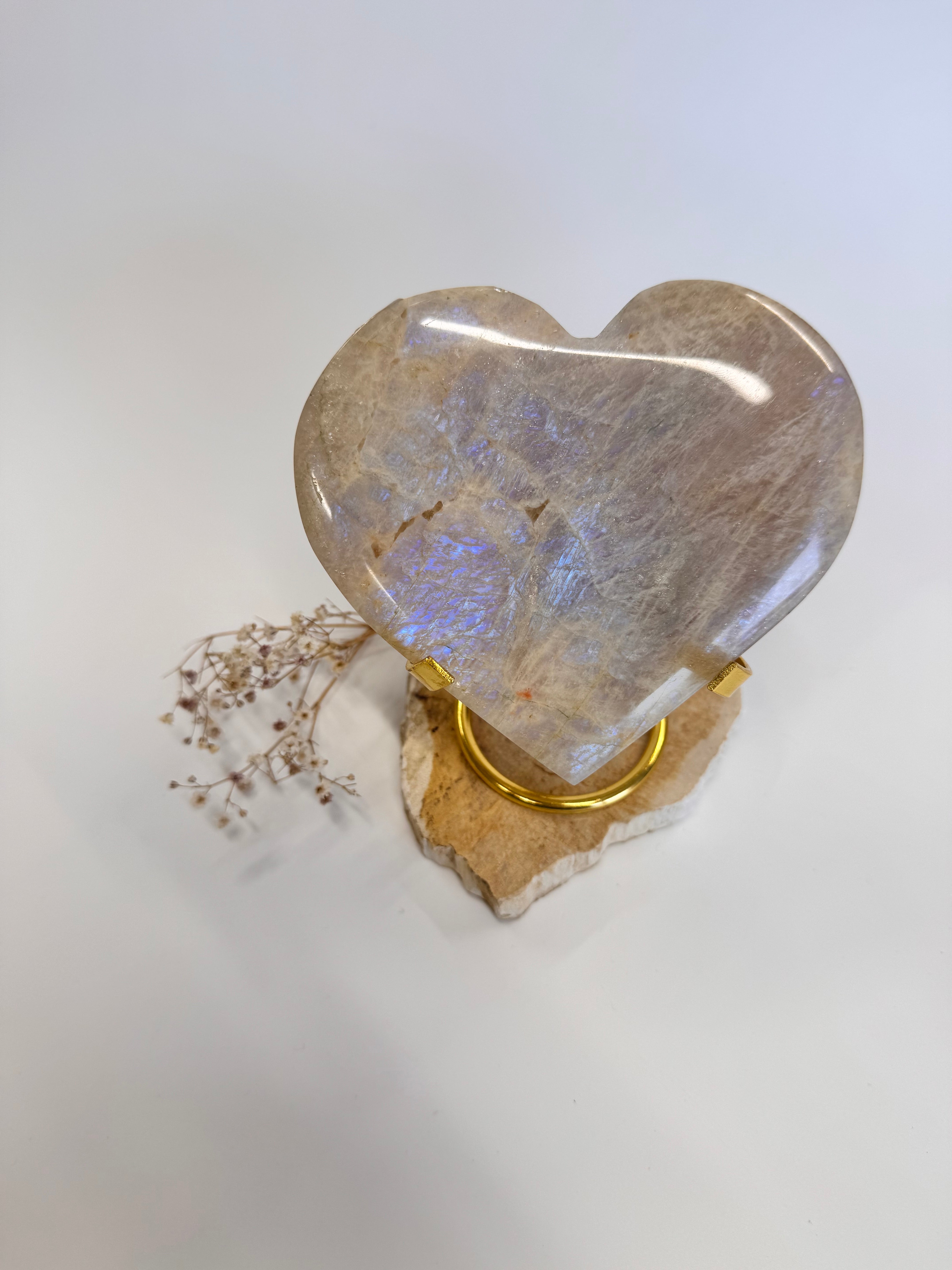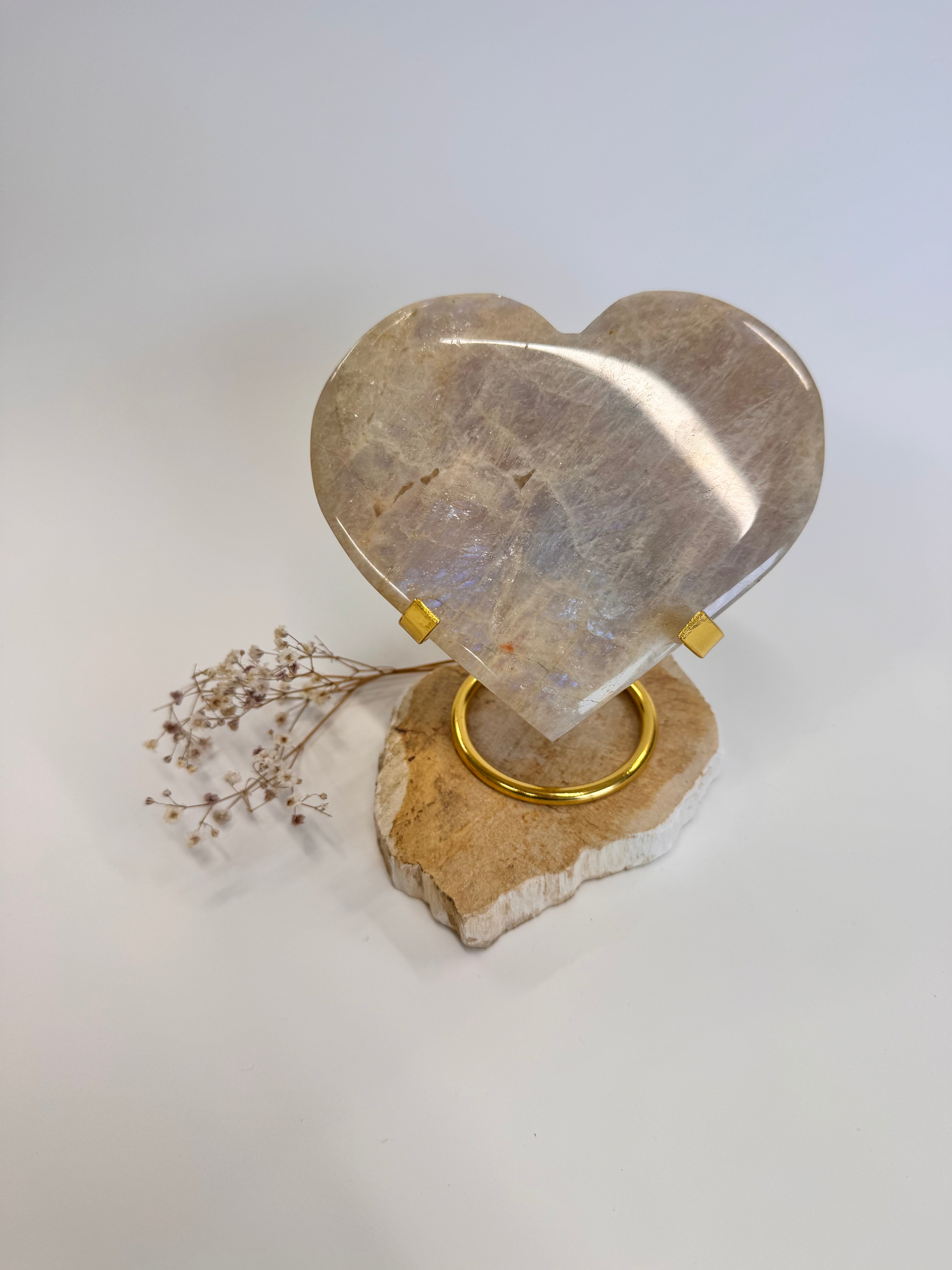 Dieses ca. 12 x 14 cm große Mondstein-Herz ist ein kraftvolles Statement-Piece.