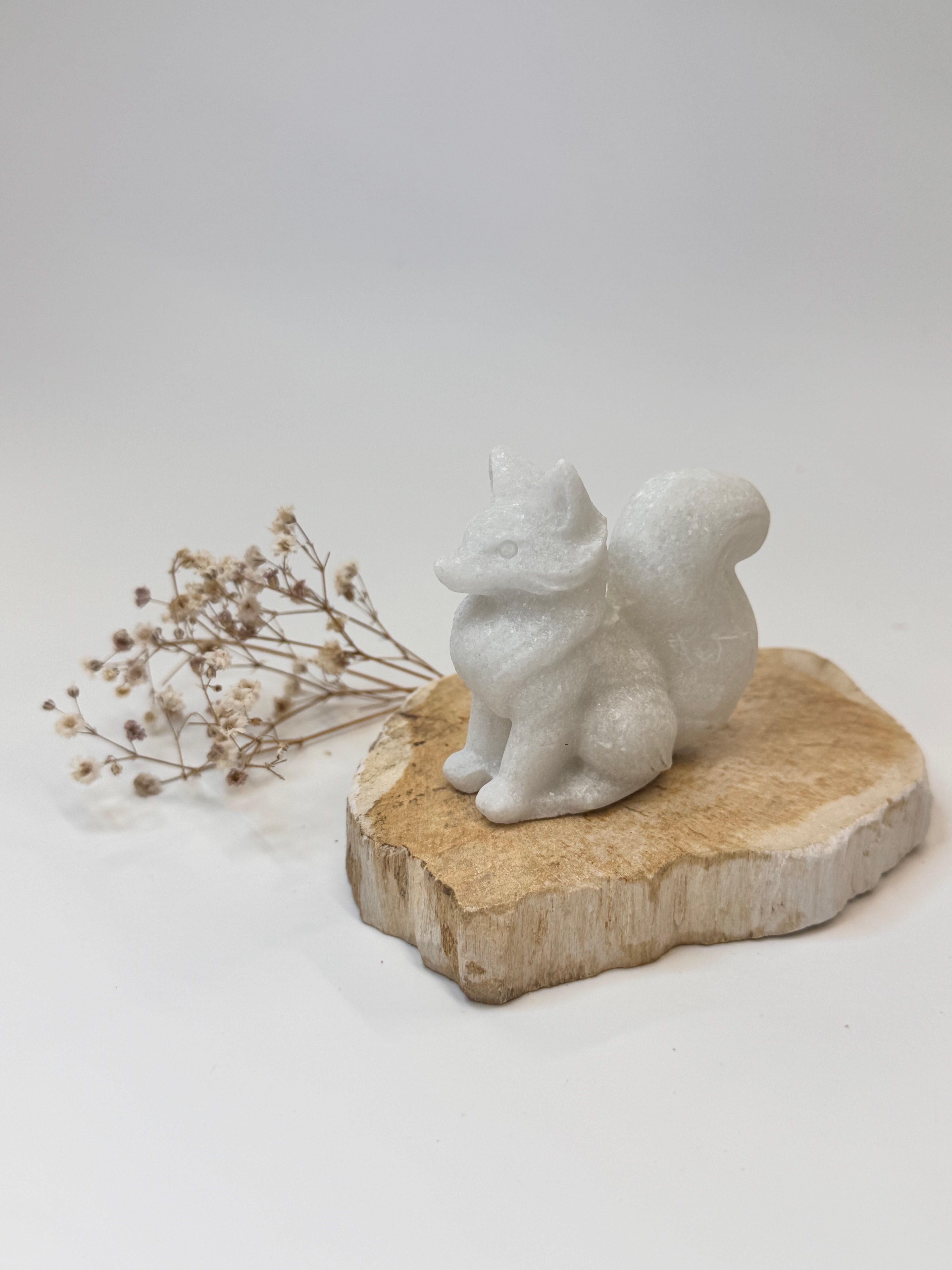 Der Fuchs steht für Anpassungsfähigkeit, Intelligenz und feine Wahrnehmung. In weißer Jade wirkt diese Figur besonders ruhig, ausgleichend und schützend. Weißer Jade wird eine klärende, harmonisierende Energie zugeschrieben und unterstützt dabei, innere Ordnung zu finden und den eigenen Weg mit Gelassenheit zu gehen.